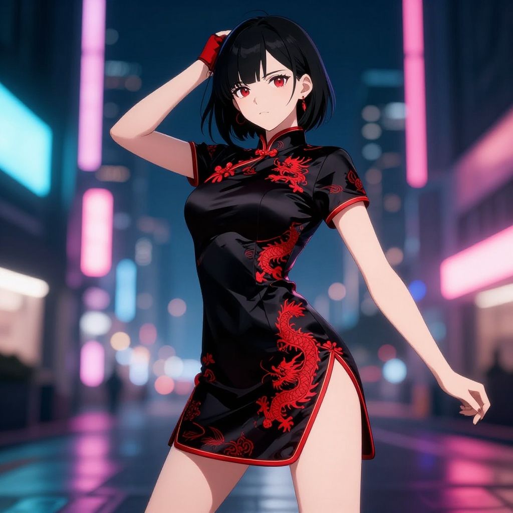 Hinata cheongsam, graceful anime girl wearing classic blue cheongsam with floral patterns, standing by a cherry blossom tree, gentle breeze, vibrant colors, high detail
