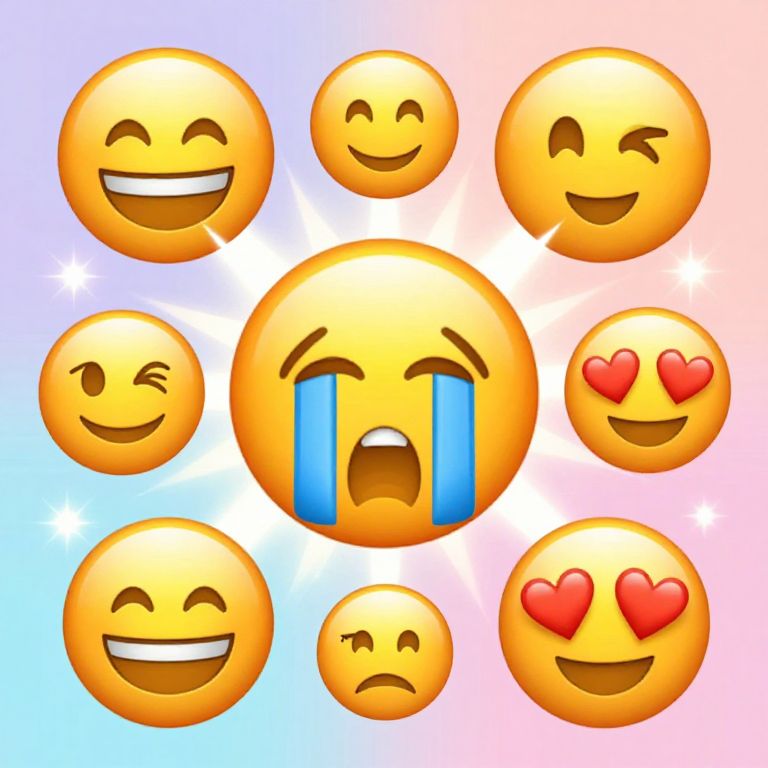 Emoji for Instagram post, a creative collage of expressive emojis including laughing, crying, love eyes, surrounded by trendy pastel backgrounds and dynamic light flares, designed with a playful and engaging aesthetic for social media visuals.
