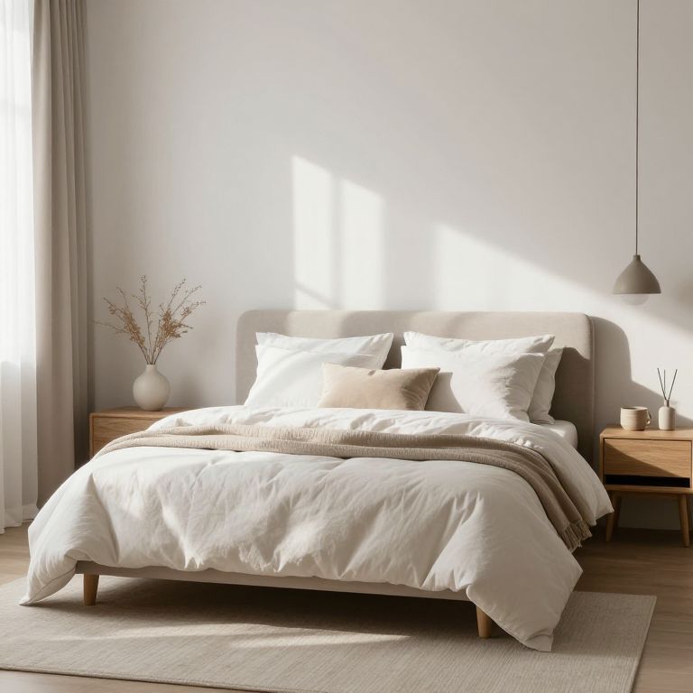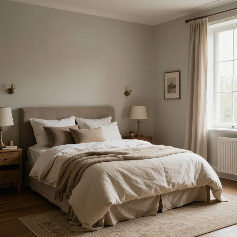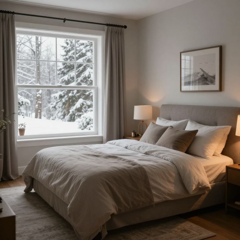 Embracing the quiet embrace of winter, this master bedroom exudes a serene cocoon of warmth and introspection, where the soft hum of nature outside mirrors the soul’s yearning for stillness and reflection.