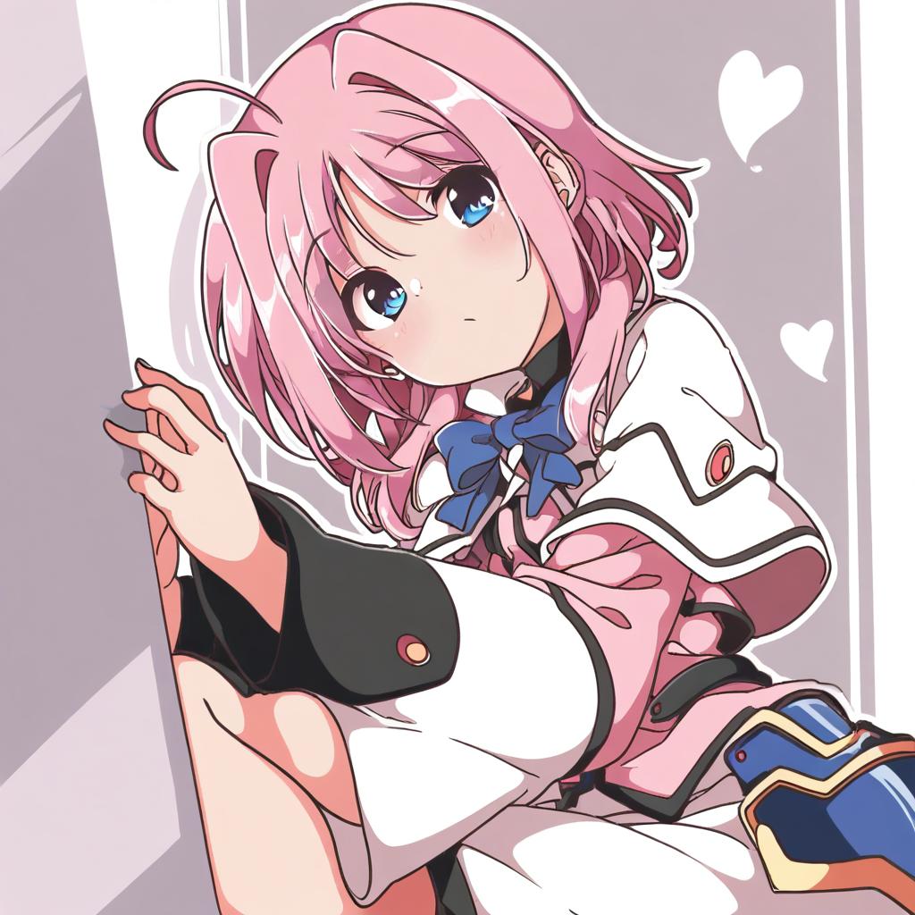 Caro ru lushe, lyrical nanoha, 1girl, blue eyes, pink hair, ahoge, by artist gokuu (acoloredpencil), animagine