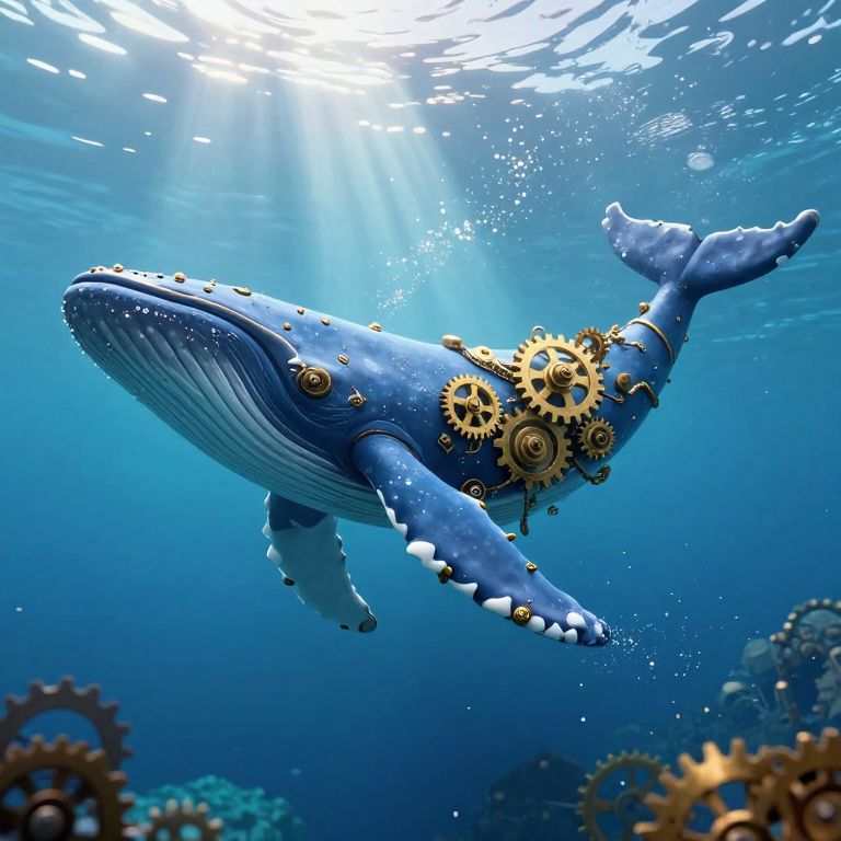 Steampunk Blue Whale with Gears Underwater
