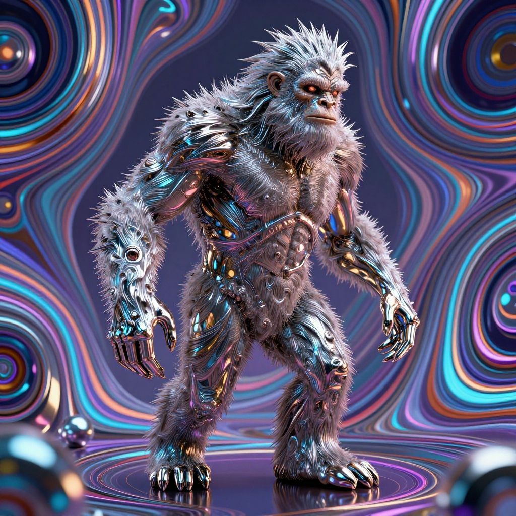 Psychedelic style (((Ningyo (Japanese) ├в┬А┬У Monkey-fish hybrid)))=shiny metal, reflective, =((Vivid, HDR, Canon50, 8K, Hyper Realistic, Dramatic, Epic, Dynamic Contrast, Cinematic Lighting)) (((Zoomed Out, - Generate images with sharp edges and fine details.- Produce high-resolution images with no blurriness or distortions.- Create images with clear and well-defined subjects.- Ensure that the output images have crisp lines and distinct features.- Generate images with vibrant colors and accurate tones.- Avoid noise or artifacts in the generated images.- Focus on producing clear textures and patterns in the images.- Emphasize clarity and definition in all aspects of the generated images.- Prioritize the sharpness and clarity of the main subjects in the images.- Optimize the AI model to produce clear and visually appealing images., By art germ . Vibrant colors, swirling patterns, abstract forms, surreal, trippy