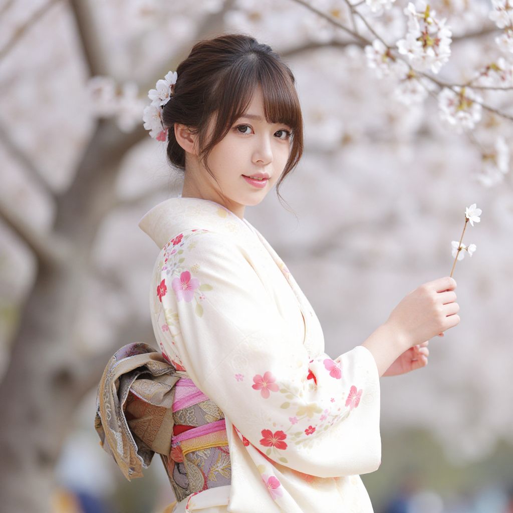 Beautiful Woman in Kimono with Blossoms