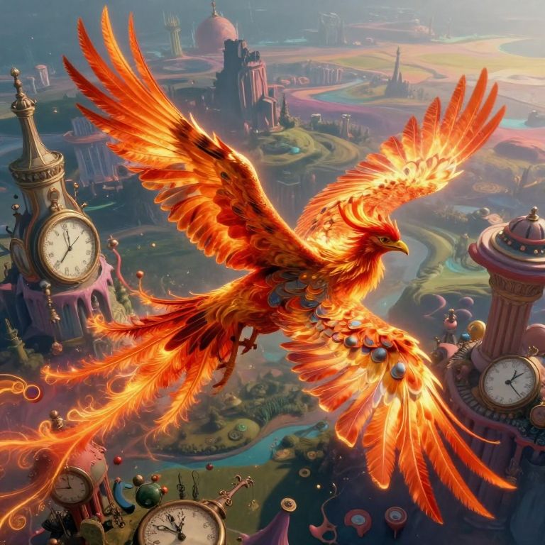 A fantastical digital illustration depicts birds with intricate, clockwork-inspired wings soaring skyward from a grand, gear-filled cityscape, their flight paths traced by constellations resembling ancient machinery against a vibrant, dreamlike backdrop.