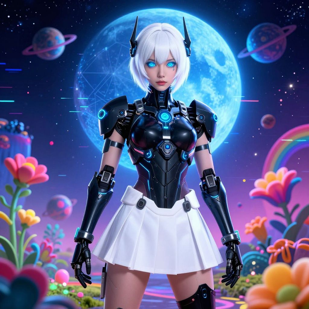 Kawaii Futuristic Girl in White and Gold Outfit