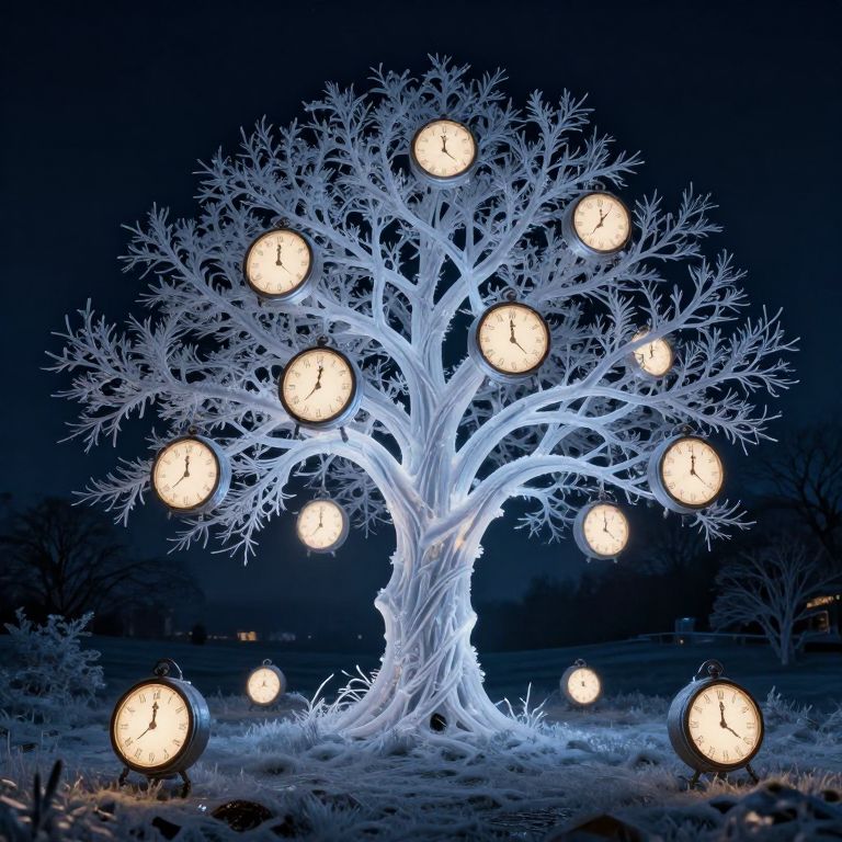 Time-keepers in velvet robes harvest moments from a colossal tree of seconds, trading them at an intersection where minutes are spent as currency.