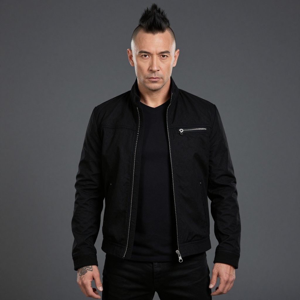 Black Movie Costume, man with a mohawkcut and a black jacket