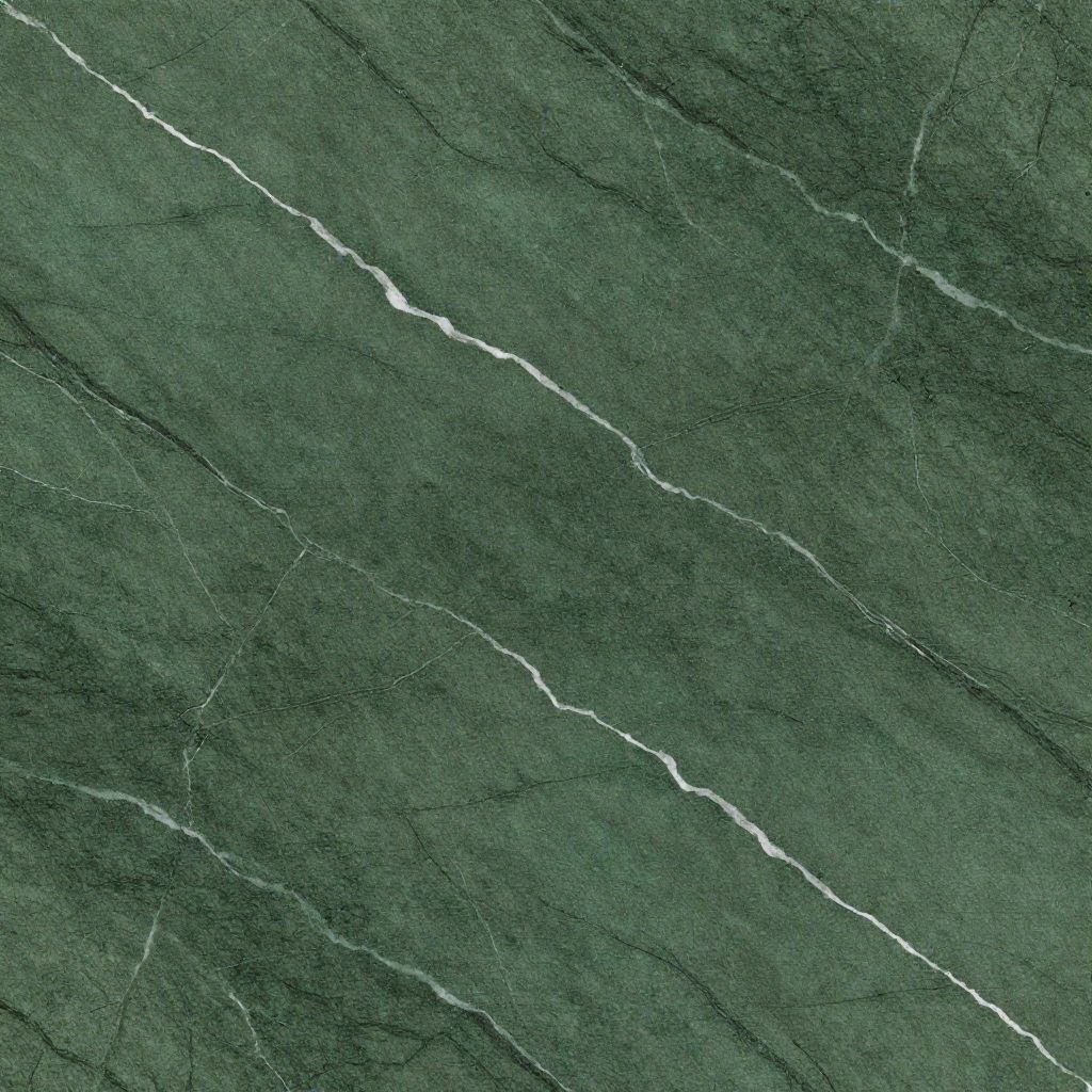 Seamless green marble texture featuring rich forest and olive green shades, delicate white and dark green veins flowing organically, realistic polished stone look with subtle shimmer, suitable for 3D rendering and elegant architectural surfaces.