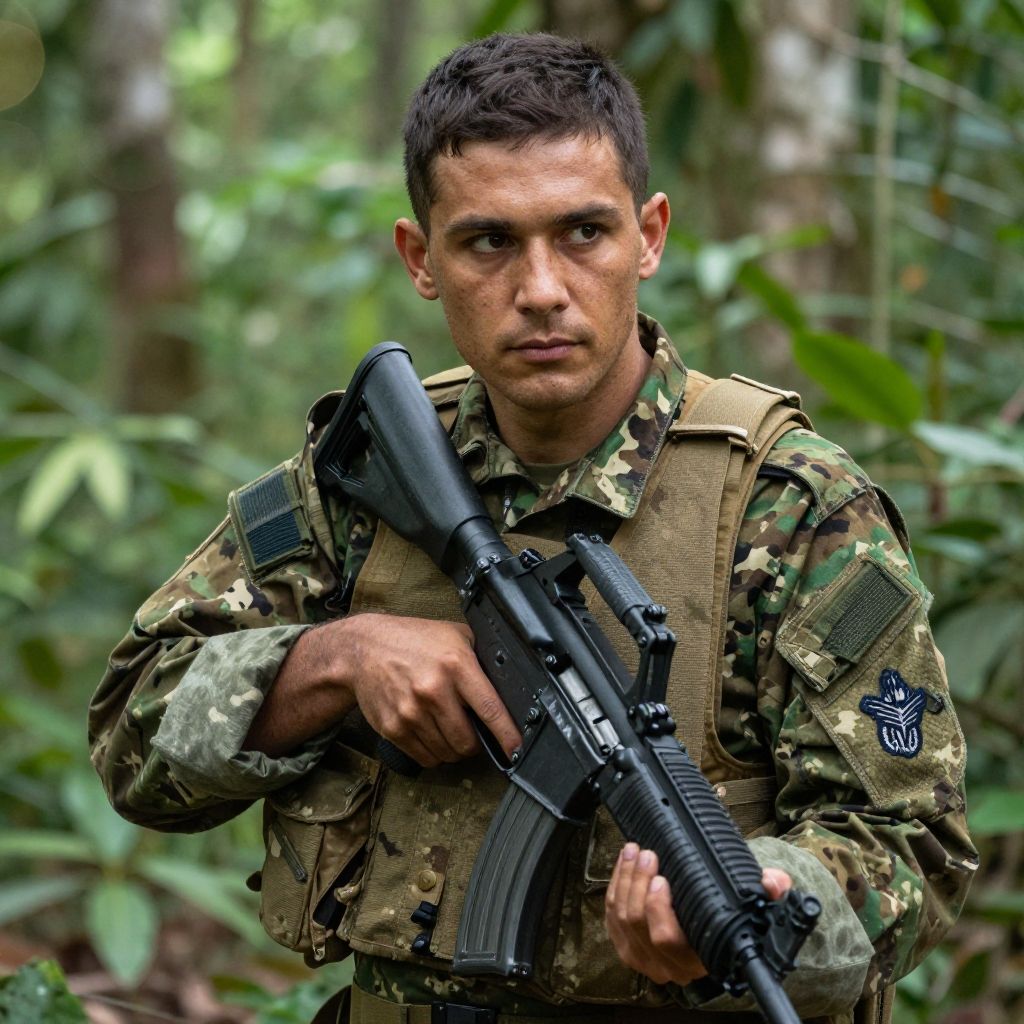 Photorealistic Soldier in Jungle Camouflage