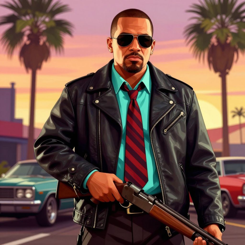 GTA photo effect online free, an aerial view of a sprawling city with sharp, graphic details and pop-art inspired colors capturing the crime and chaos vibe of Grand Theft Auto game covers, refined with digital textures and atmospheric lighting.