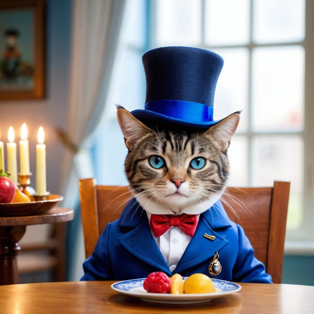 Cat Chef with Strawberries and Cake