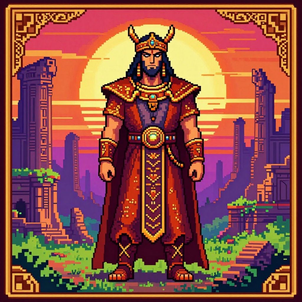 Ancient Guardian Pixel Art Sunset