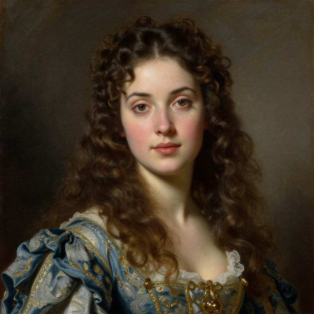 Rococo Pin-Up Woman with Curly Hair