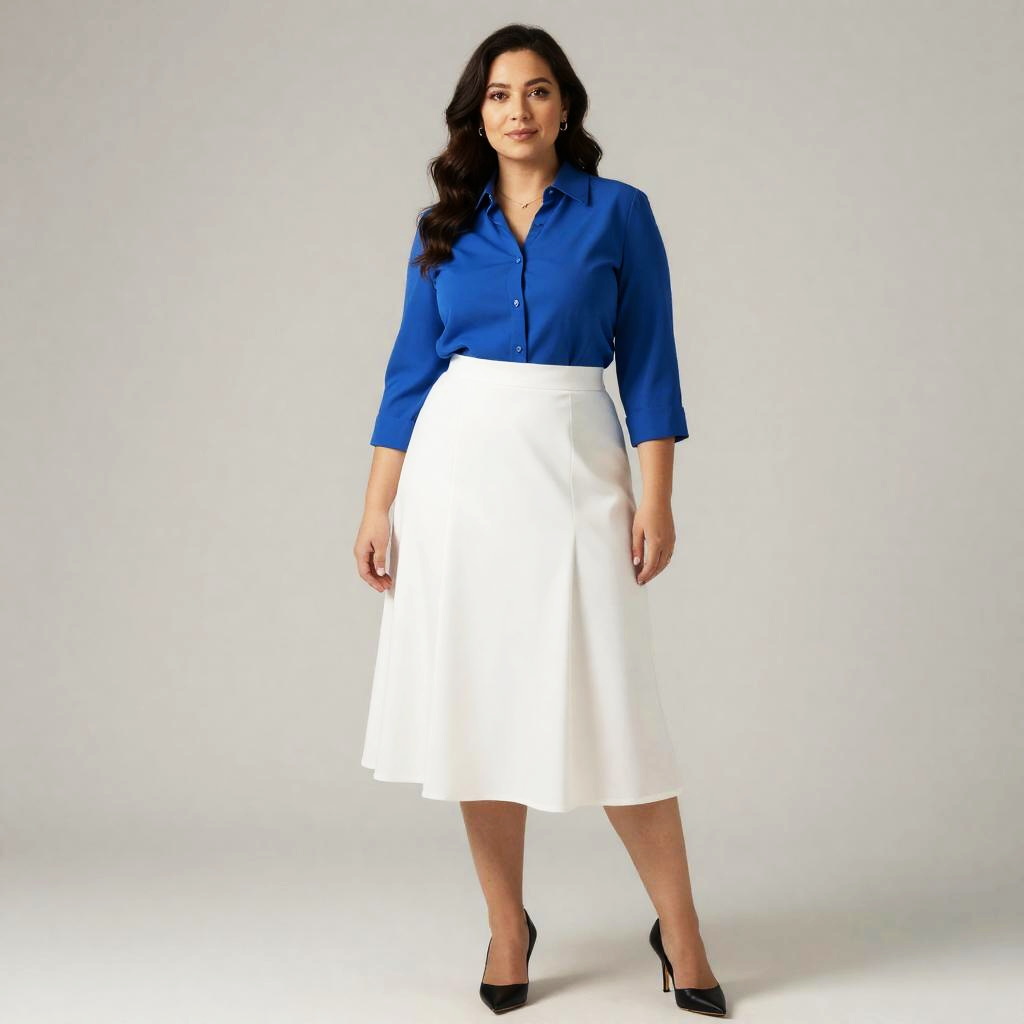 Plus Size Ball Dress, a woman in a blue dress posing for a picture