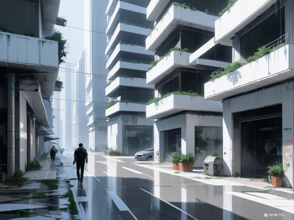 Painting by eytan zana, cyberpunk city, pristine, white, metallic, beautiful
