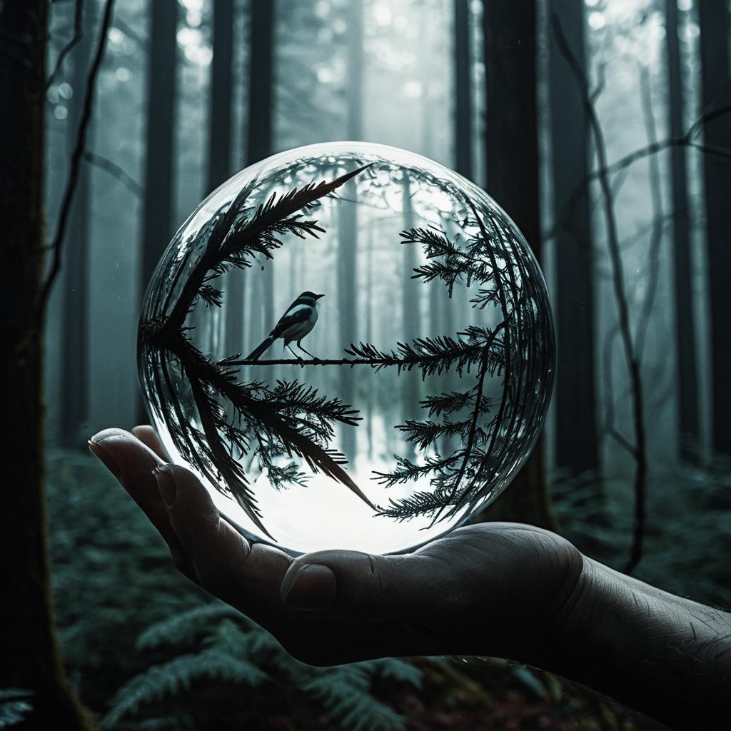 Intricate Leaf with Glass Sphere Reflection