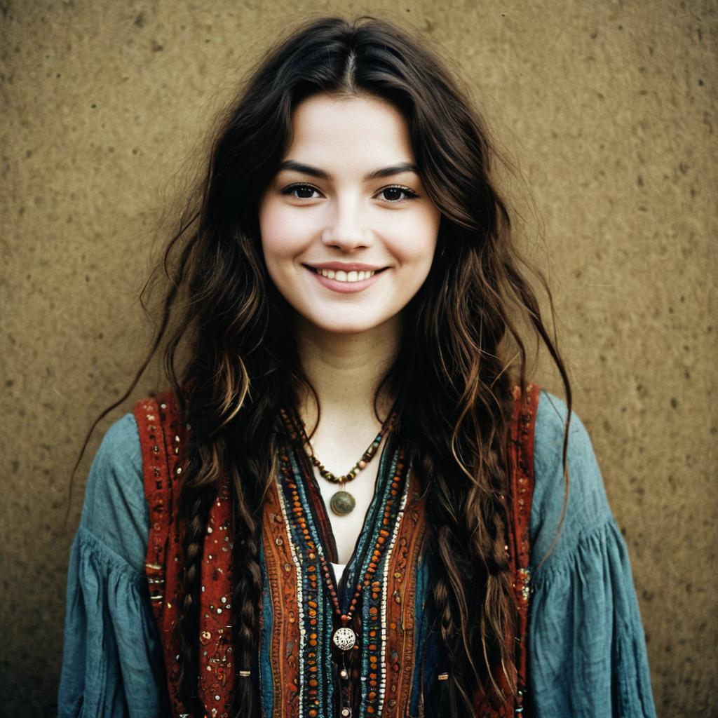 Smiling Young Woman in Denim Outfit