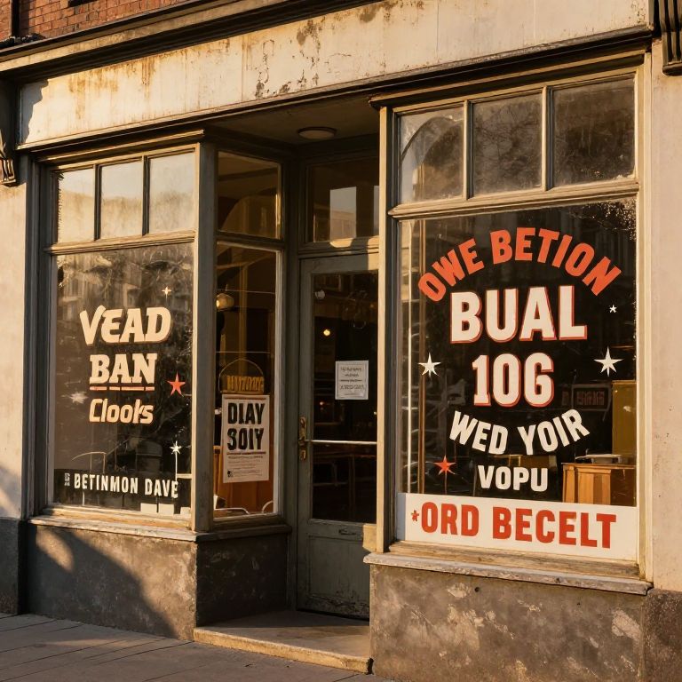Werbung on vintage storefront windows during golden hour, nostalgic ambiance, distressed textures, warm sunlight casting soft shadows, detailed typography, a mix of retro and modern advertising elements