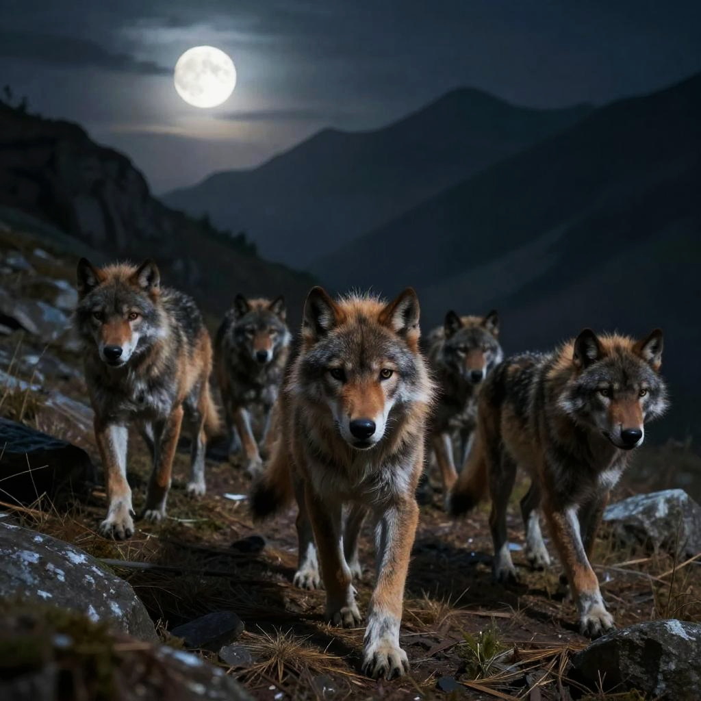 Skinwalkers Pack on Moonlit Mountains