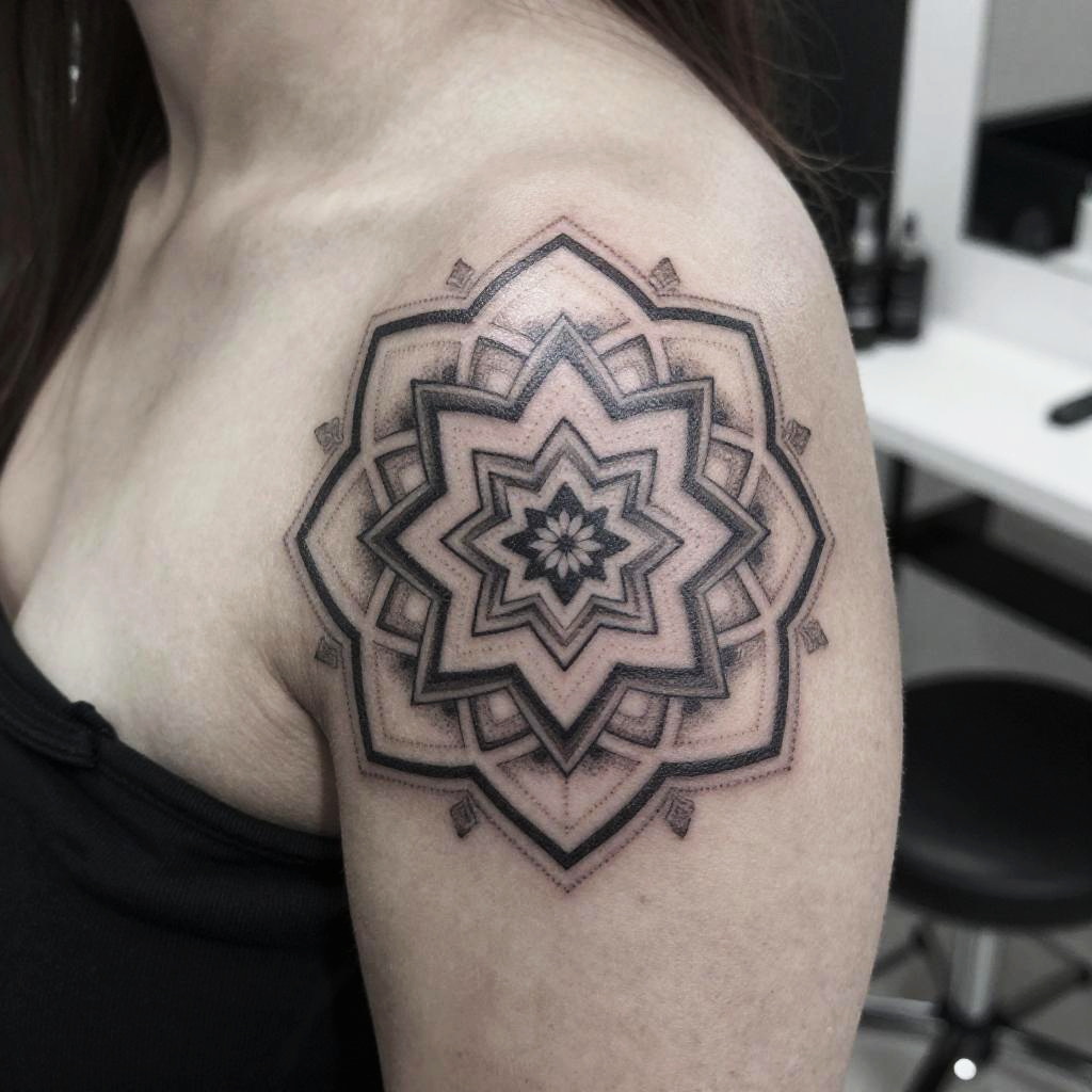 Geometric Mandala Shoulder Tattoo