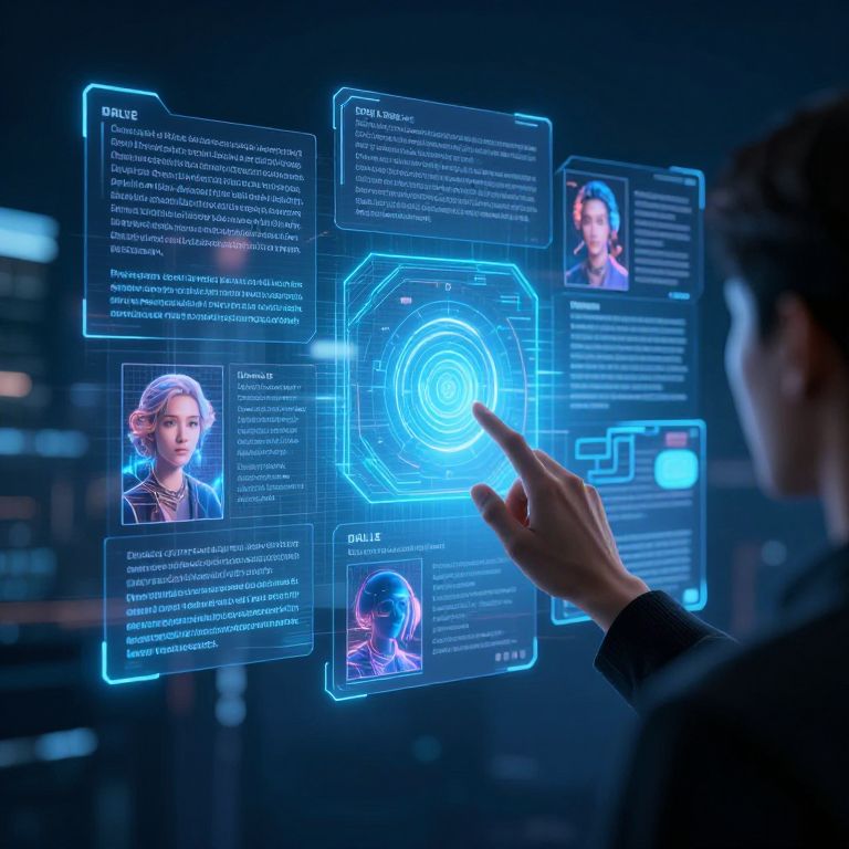 Can I use DALL·E images for commercial use? A scene showing a person interacting with futuristic holographic displays of AI-generated images, legal text floating around, symbolizing digital art creation and commercial licensing in a cyberpunk setting.