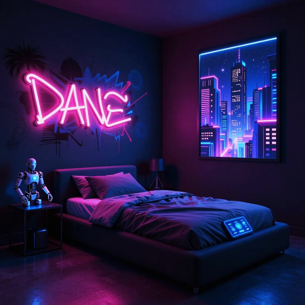 Cyberpunk Bedroom with Neon Accents