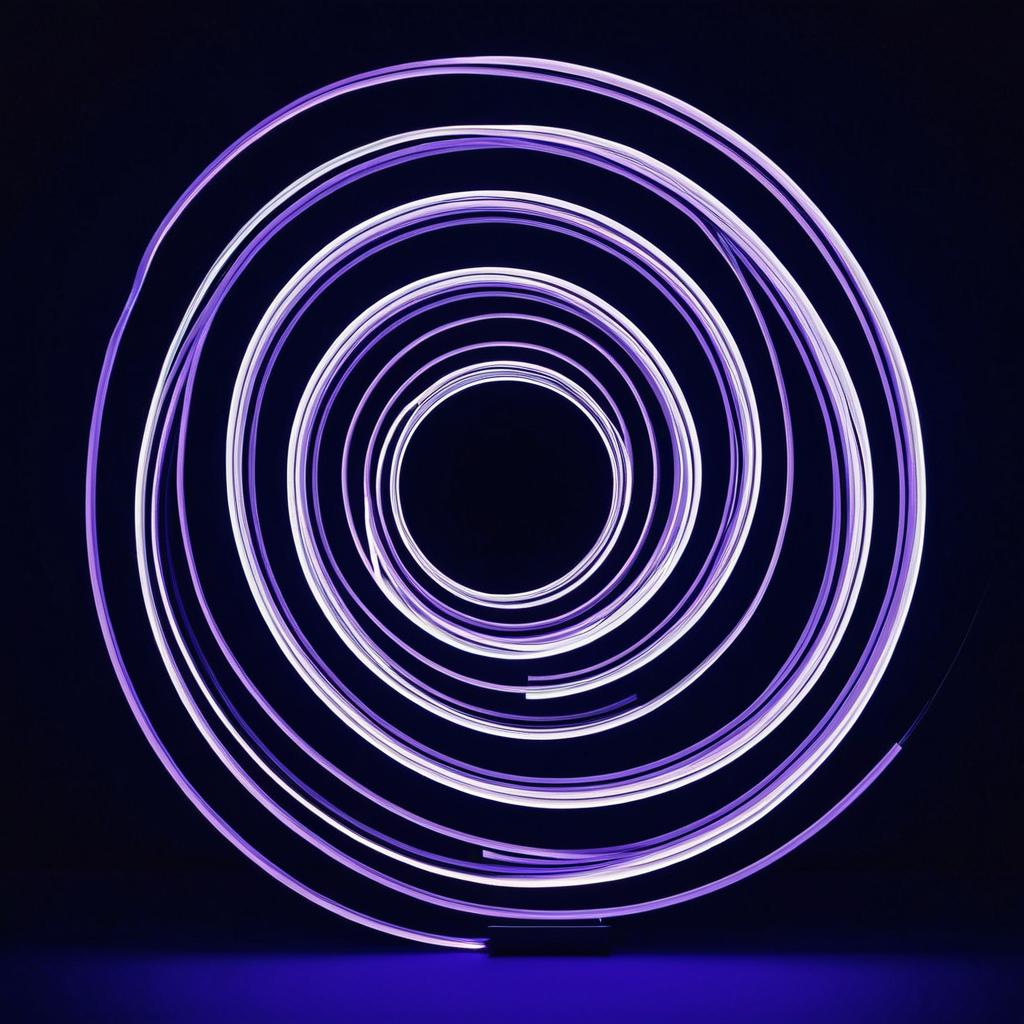 Spiral-shaped light painting with an elegant line design set against a black backdrop. The artwork features soft, glowing teal hues and graceful curves, creating an ethereal ambiance. Styled with high contrast and a contemporary art approach, the scene exudes a tranquil and serene feel. Ultra-detailed and rendered as a digital masterpiece, the composition showcases modern artistic expression with captivating visual harmony and artistic illumination.
