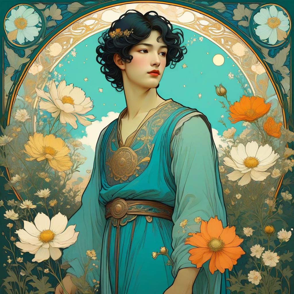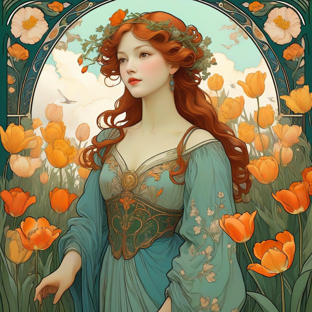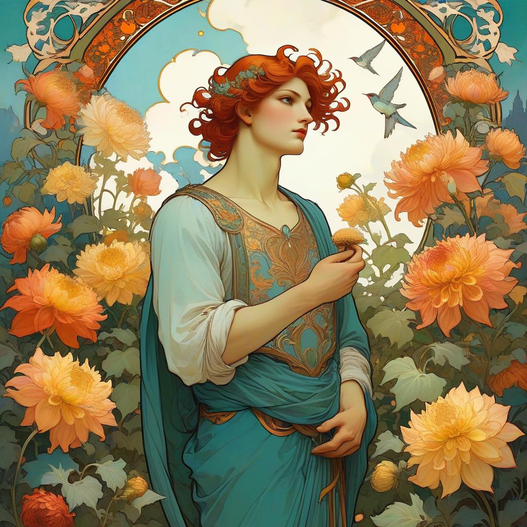 Art Nouveau Portrait of Man in Tulip Garden