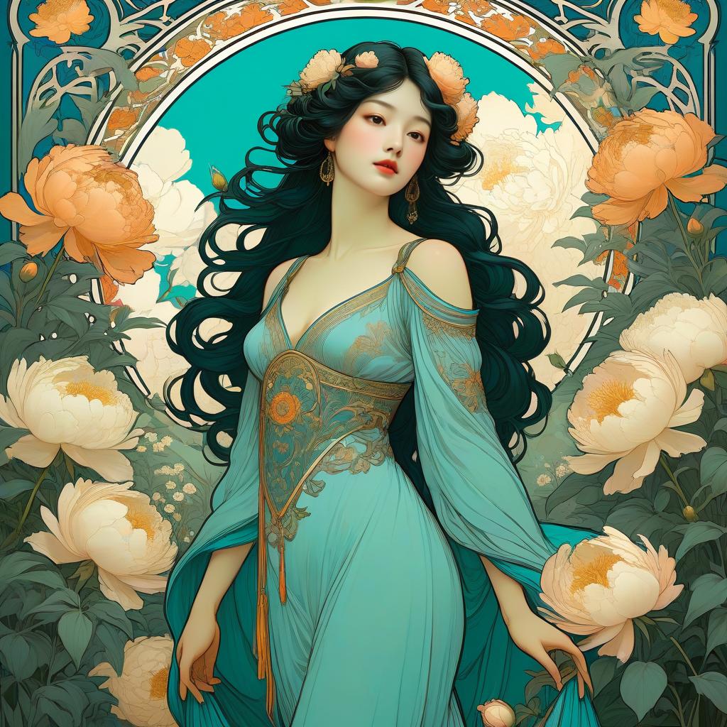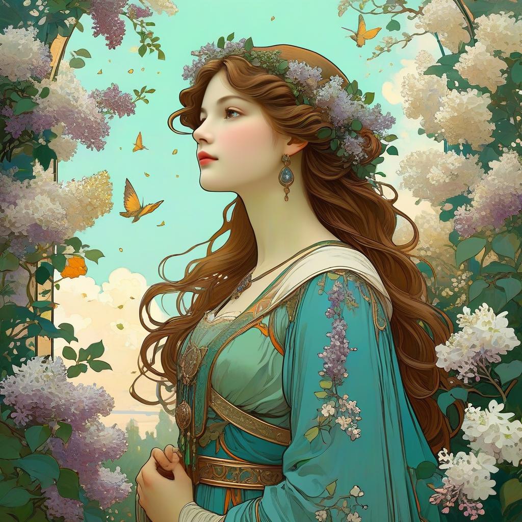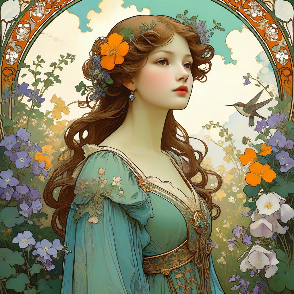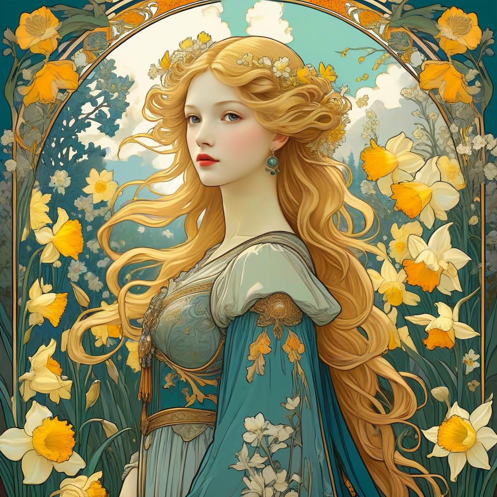 Art Nouveau Portrait of Man in Tulip Garden