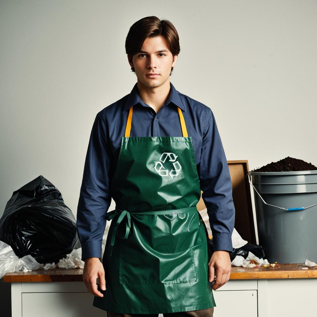 Garbage man outfit,male focus, 1boy, shirt, apron, solo, collared shirt, standing, looking at viewer, long sleeves, pants, realistic, brown hair