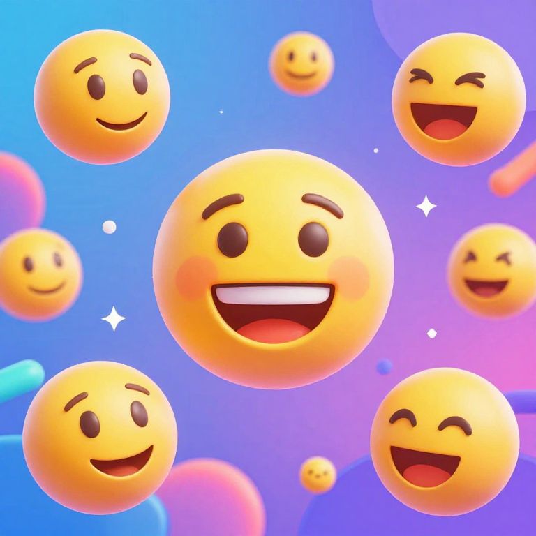 Pics of emojis floating in a vibrant digital space, colorful and expressive, with a glossy, 3D effect, surrounded by abstract shapes and light reflections, evoking a playful and modern tech vibe.