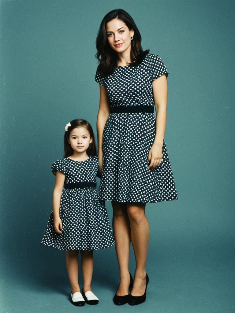 Mother and Daughter in Matching Polka Dot Dresses