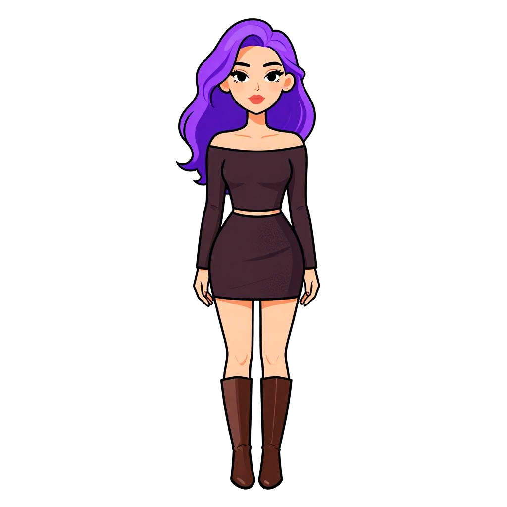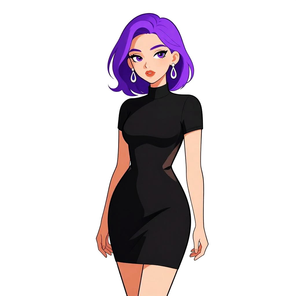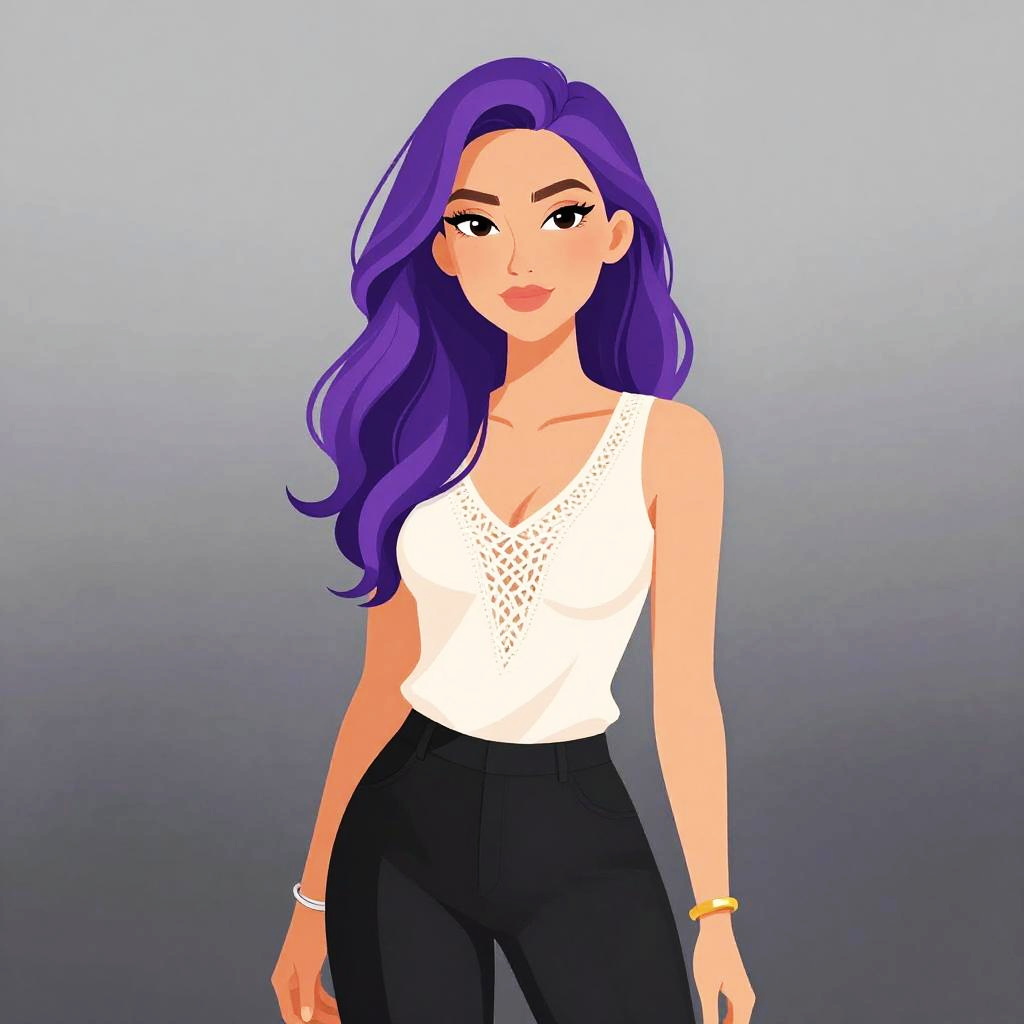 Woman with pretty face and pretty hair. Woman, casual contemporary, loose-fitting, short taupe tunic, deep V-neck with black strap detail, short sleeves, high side slits, plain fabric, white studio background. --sref 1461