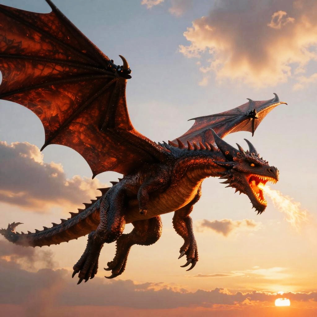 Realistic Wyvern in Thunderstorm Flight