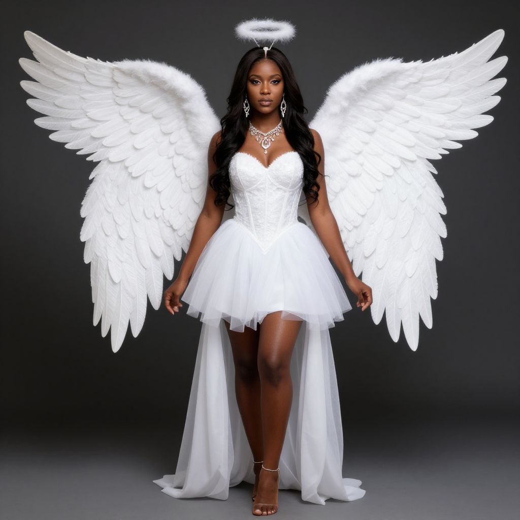 Dark-Skinned Angel in High-Low Dress