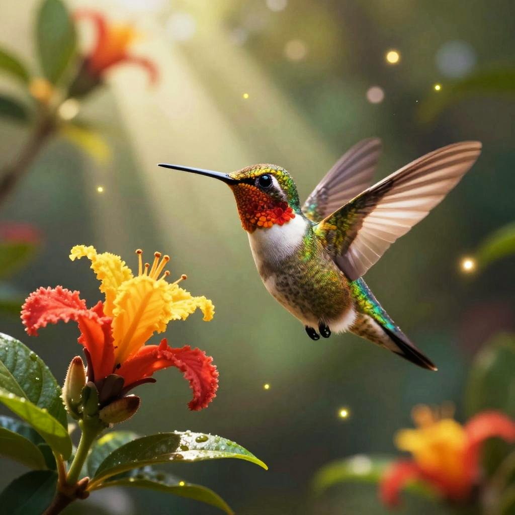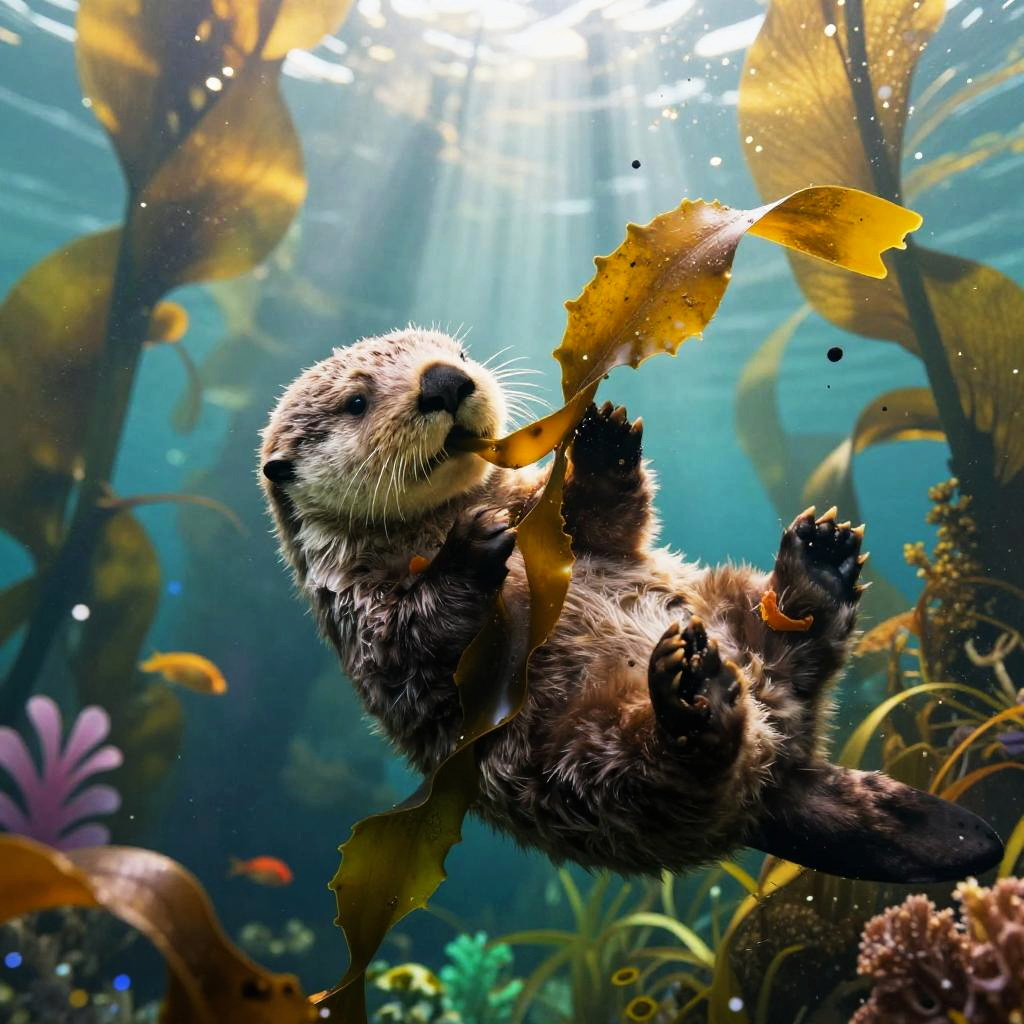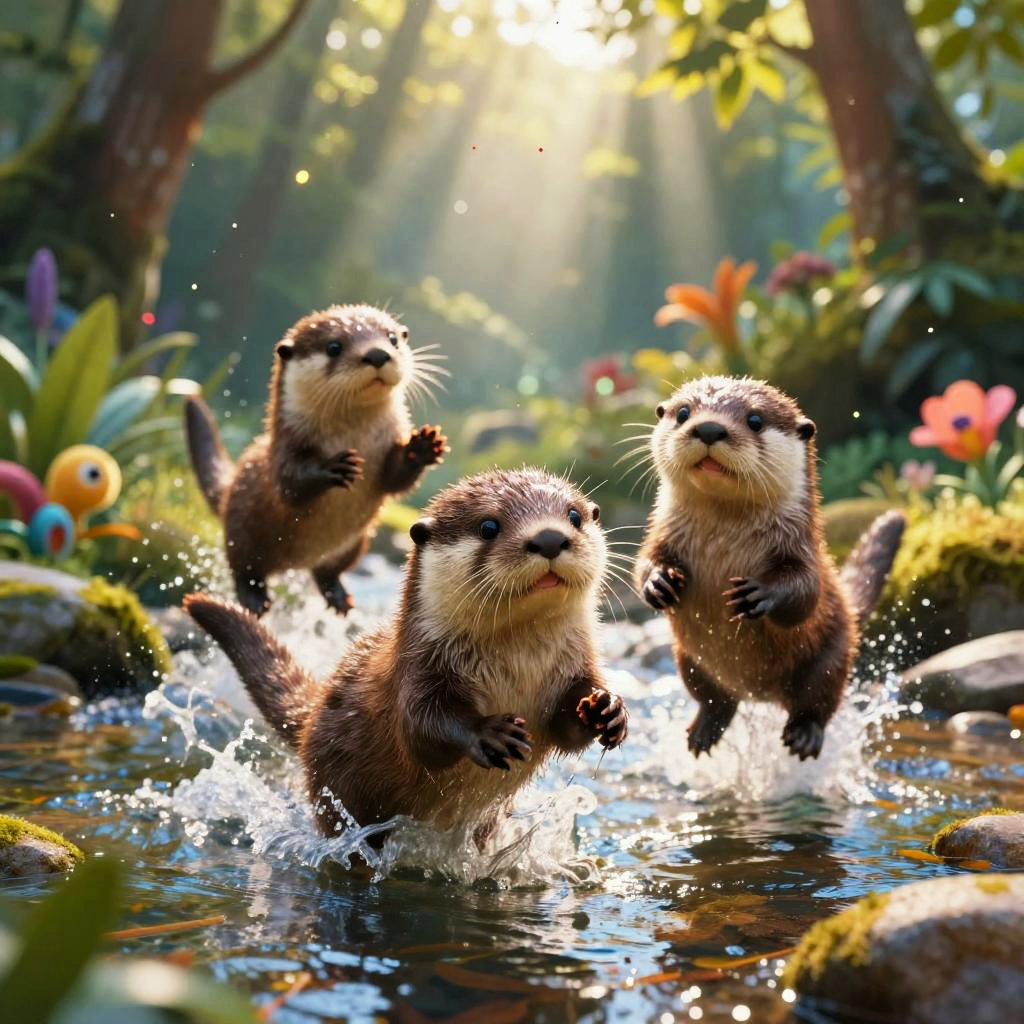 Energetic squirrel balancing on twisting vines in a tropical jungle clearing, bright beams filtering through leaves, playful whimsical atmosphere, exaggerated features, dynamic motion arcs, soft volumetric light, fluttering confetti or drifting fireflies, colorful flora and curious wildlife, crisp focus on the face, shallow depth of field, saturated tropical palette, painterly textures with subtle film grain, cinematic color grade, light bloom on highlights, high clarity, joyful energy, storybook charm, balanced composition, gentle bokeh, fine microdetail