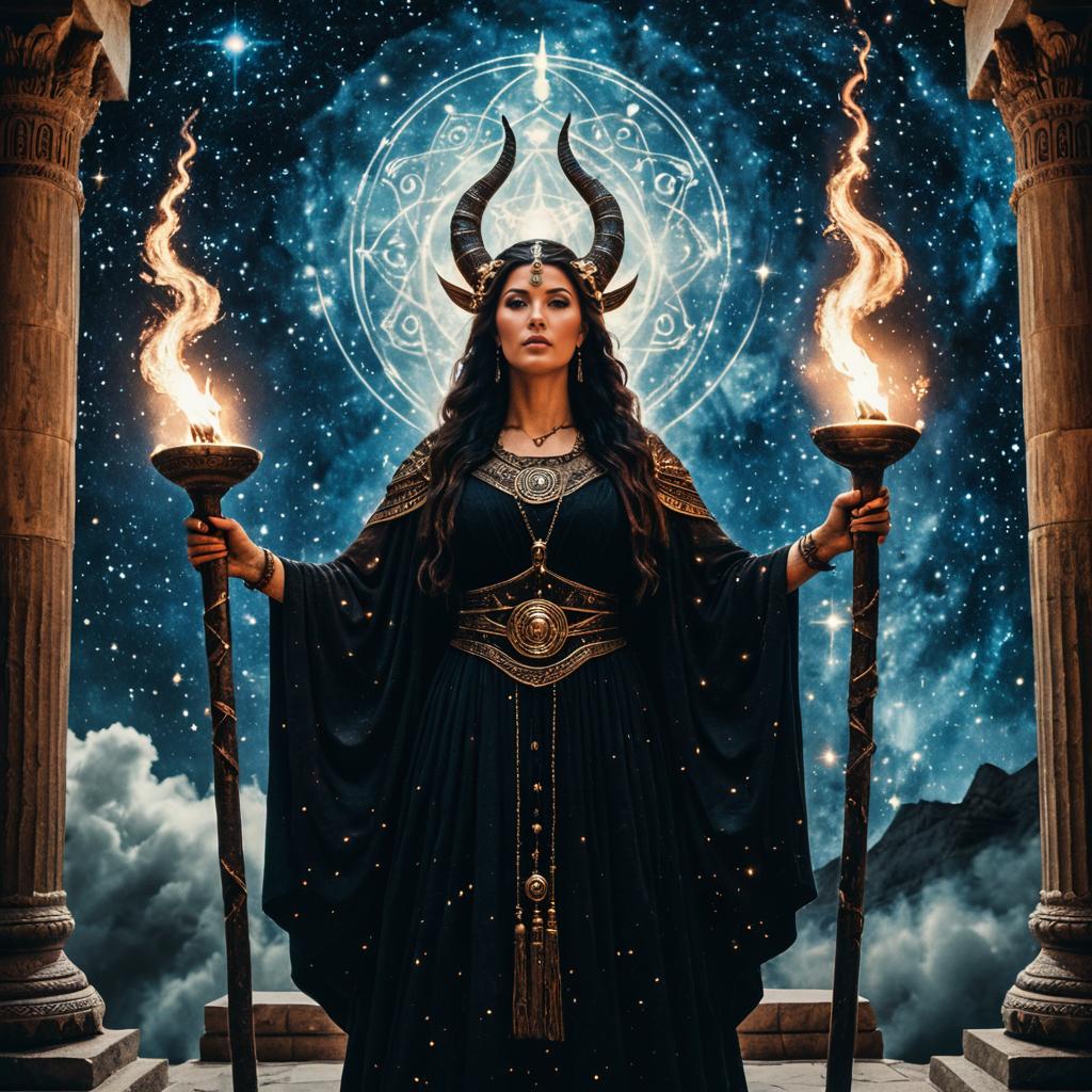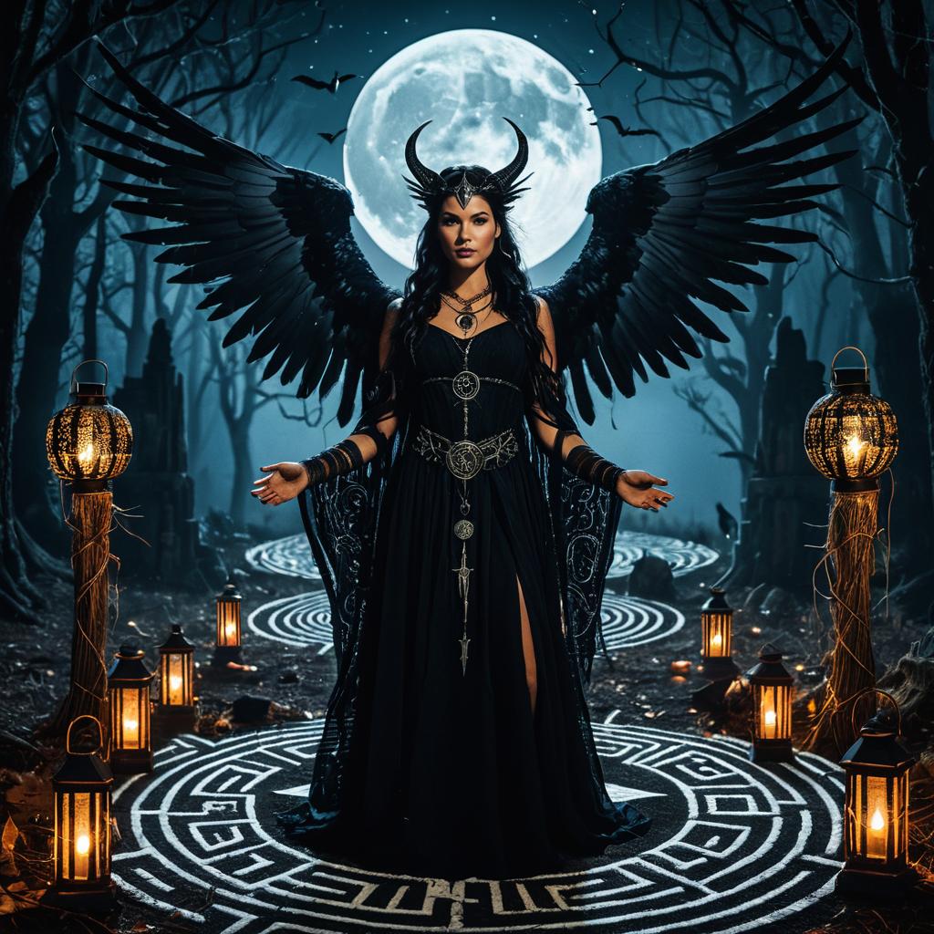 Hecate Goddess of Magic in Dark Feathered Attire