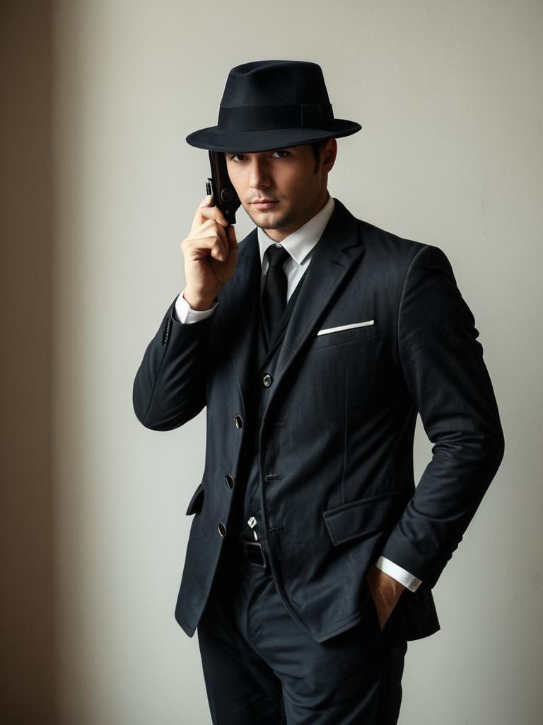 Man cosplay. Wearing The Spy costume. Realistic photo. Dressed as The Spy --sref 1400