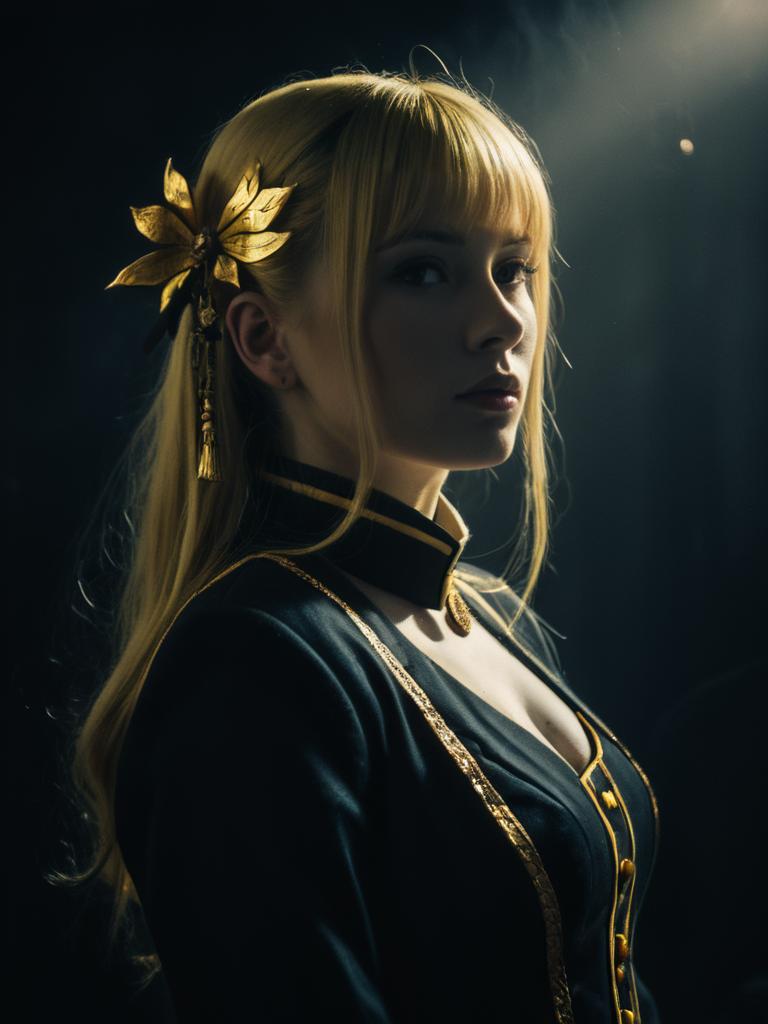 Sexy cosplay woman character wearing Shinobu Oshino costume. Realistic photo. Jane Doe dressed as Shinobu Oshino --sref 1391