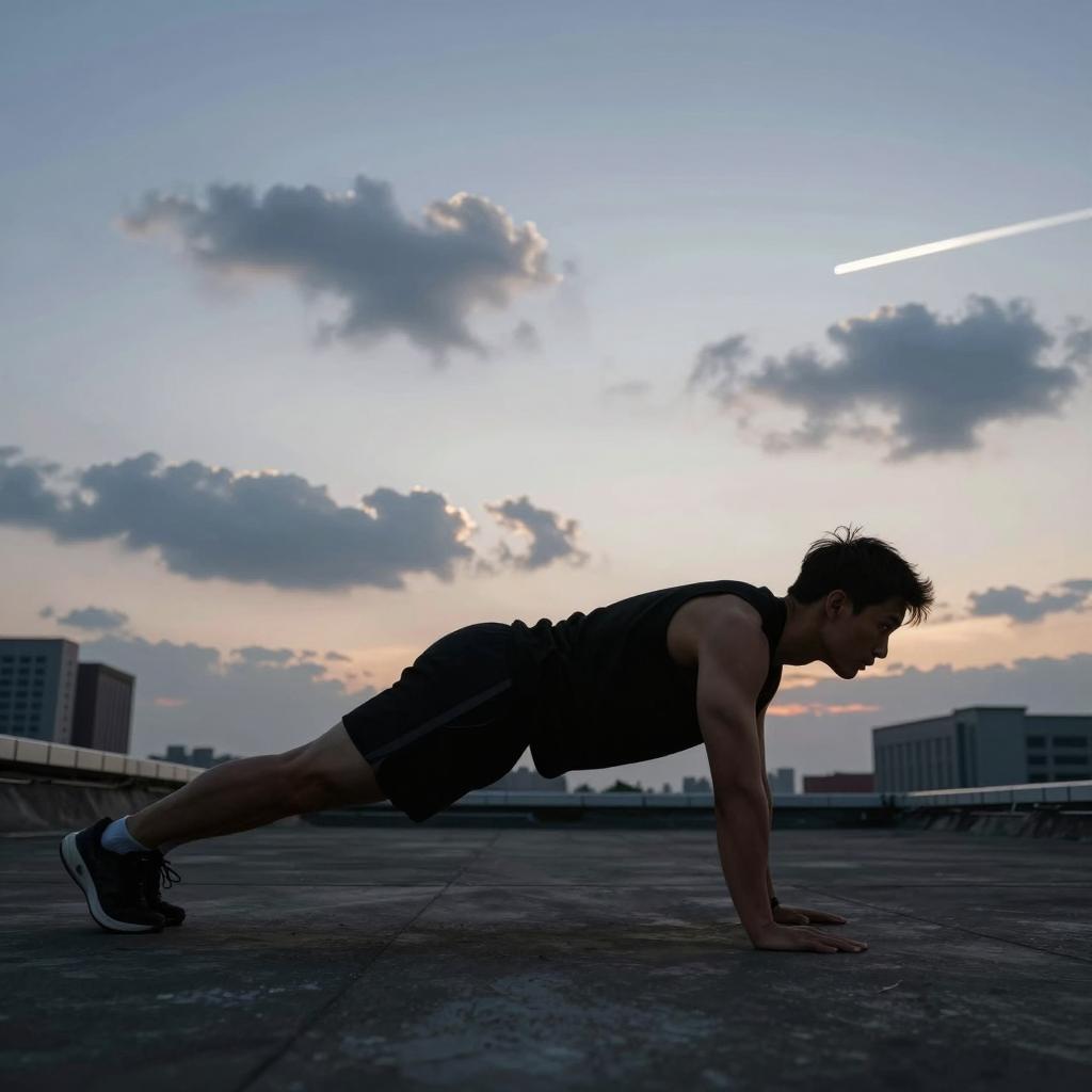 A man runs down a dimly lit, green-lit tunnel. He wears a blue jacket and jeans. The tunnel has curved walls with green and pink lights. He is mid-stride, face obscured by shadow. The background is foggy.