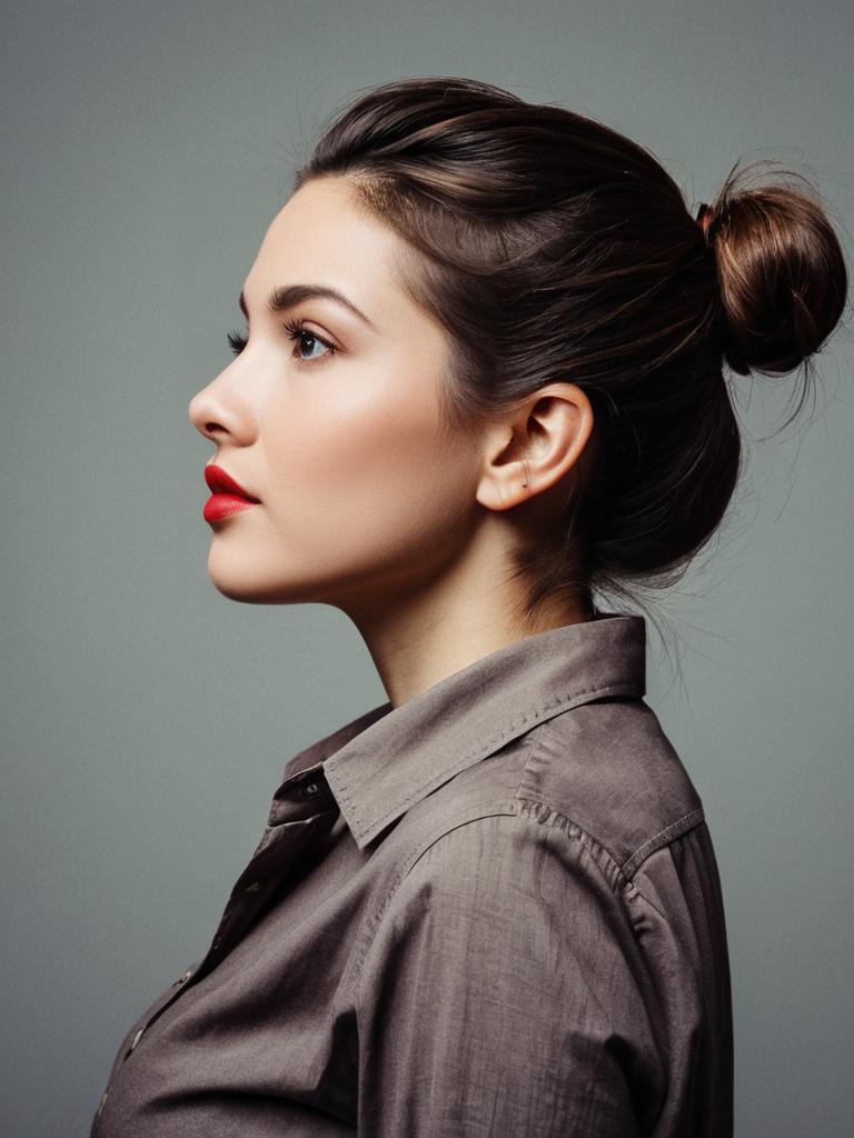 Realistic Profile of Woman with Brown Hair