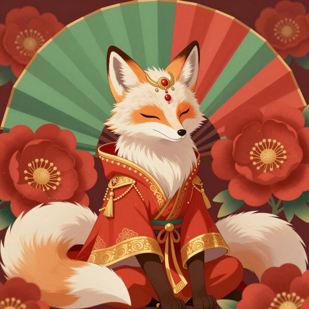 Enchanting White Fox Surrounded by Flames