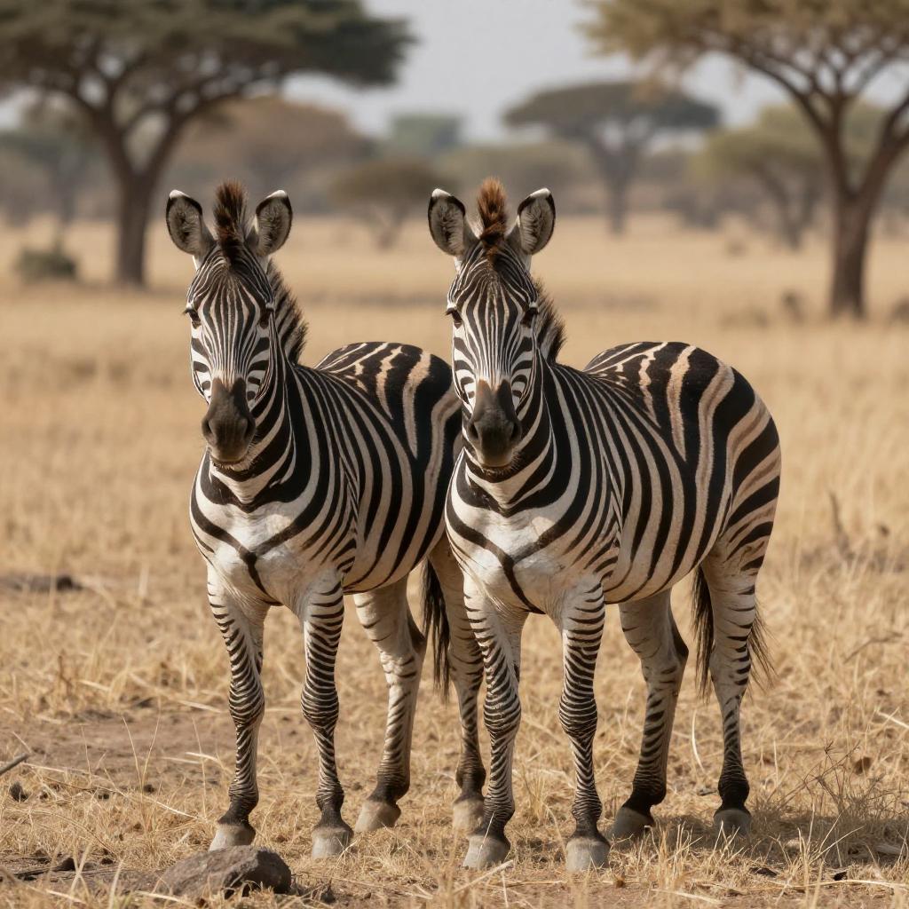 Zebras in a Serene Savanna Landscape