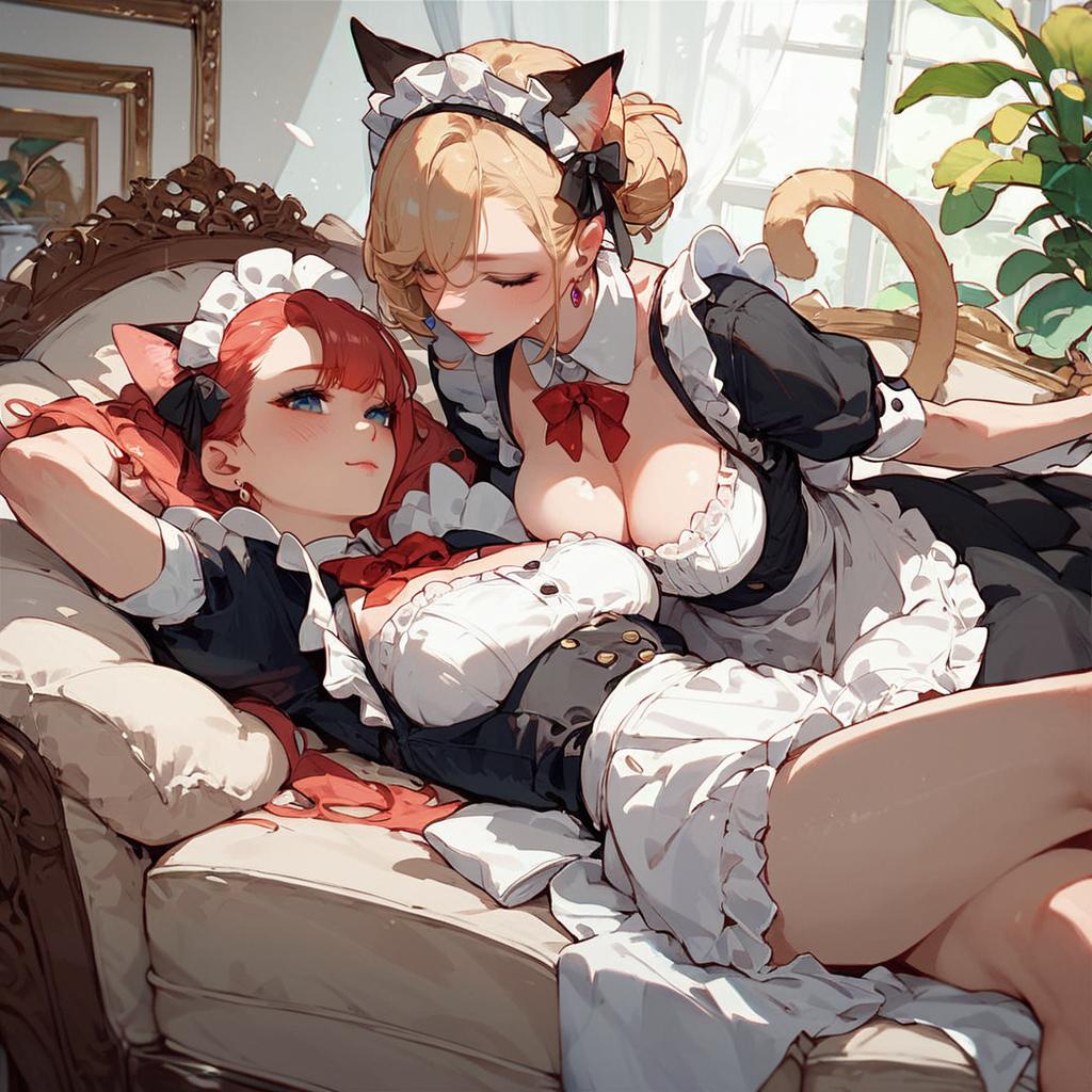 Score_9, source_anime, by akai sashimi, best quality, masterpiece, uncensored1girl, maid, mouse ears, mouse tail, garden