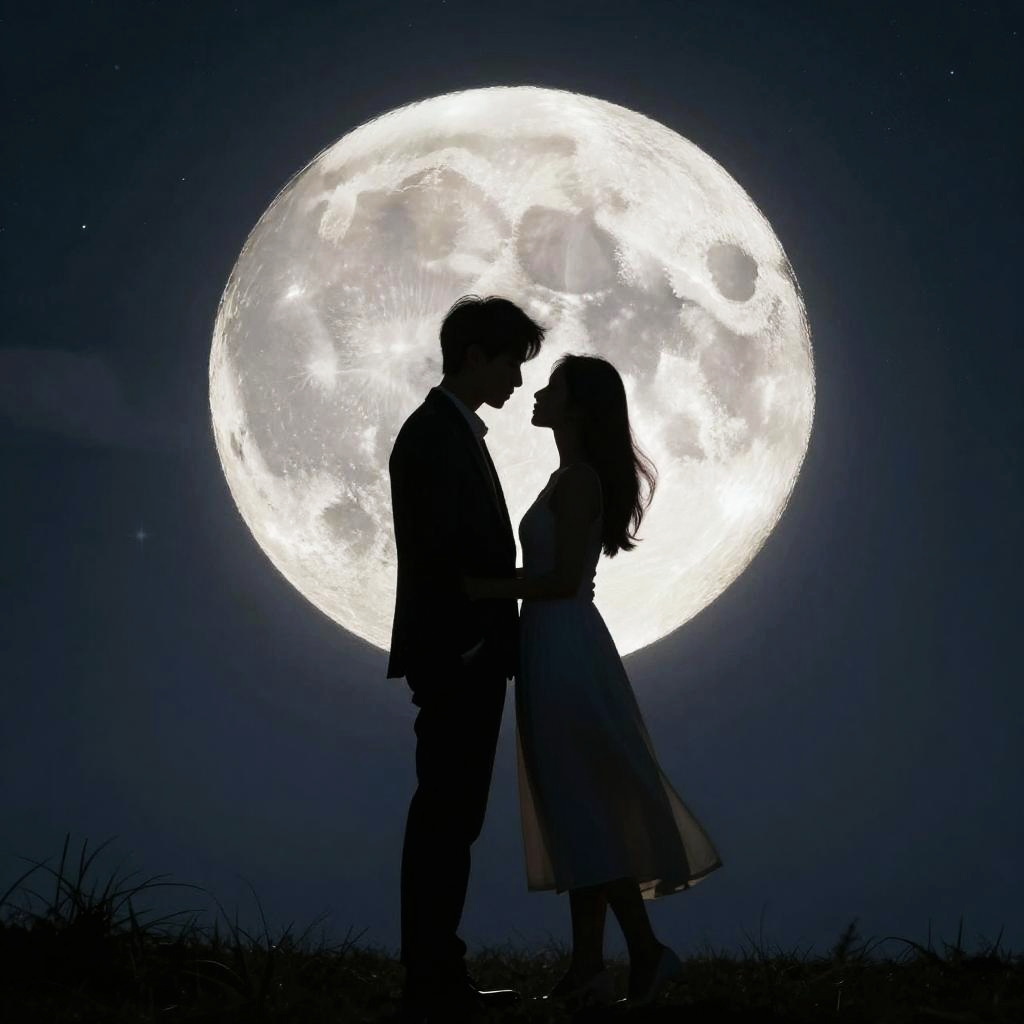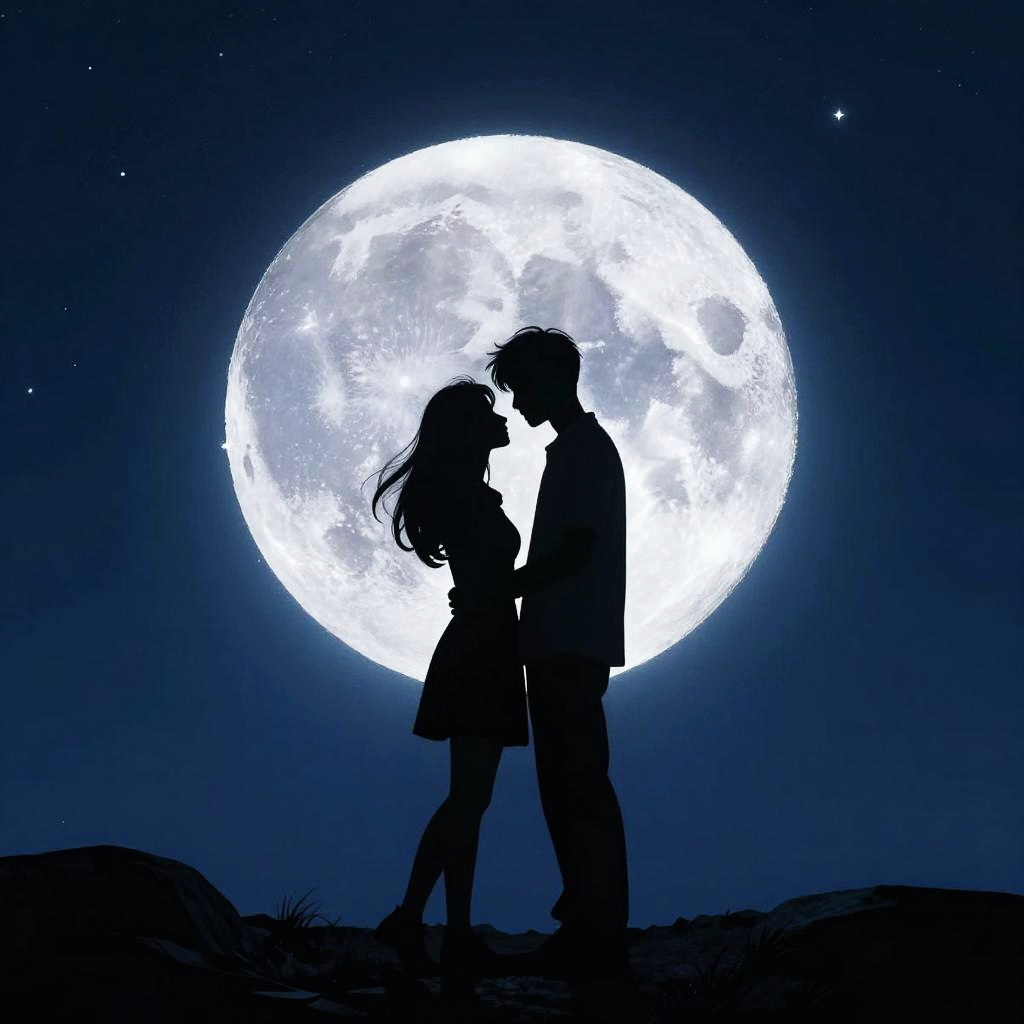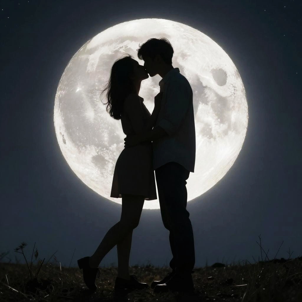 Romantic Silhouetted Couple Under Moonlight
