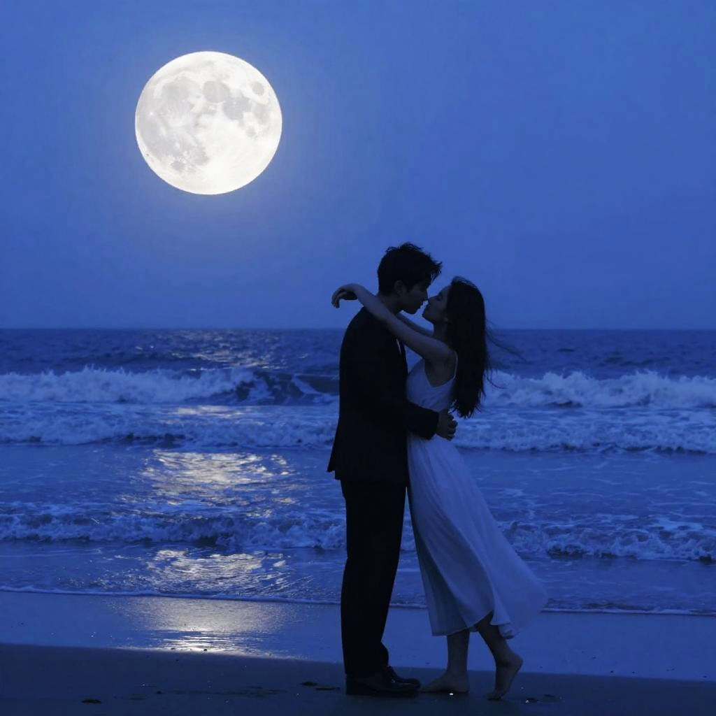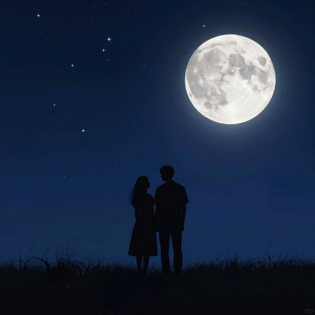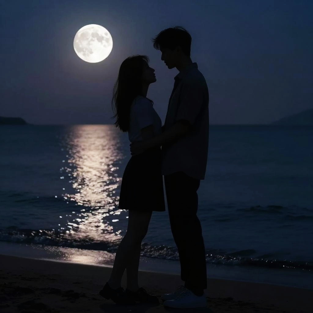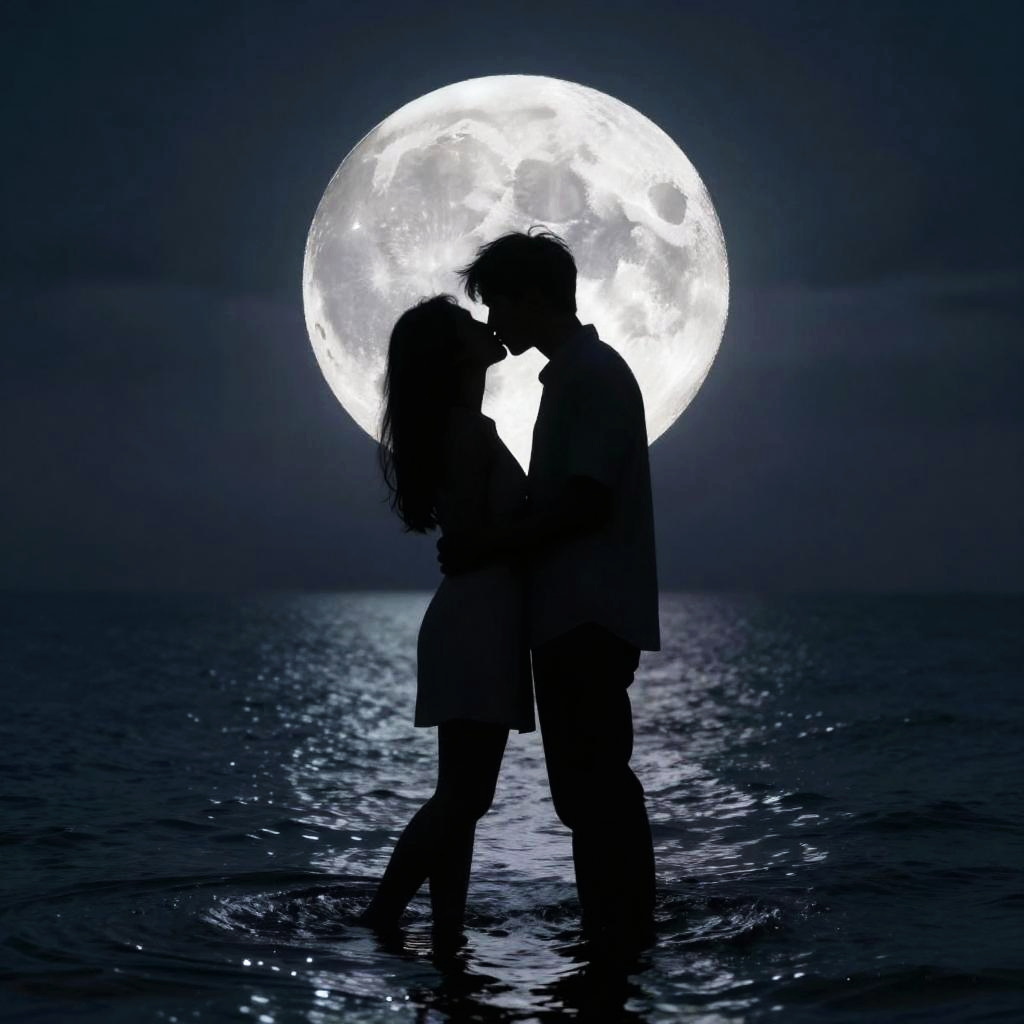 Romantic Silhouetted Couple Under Moonlight