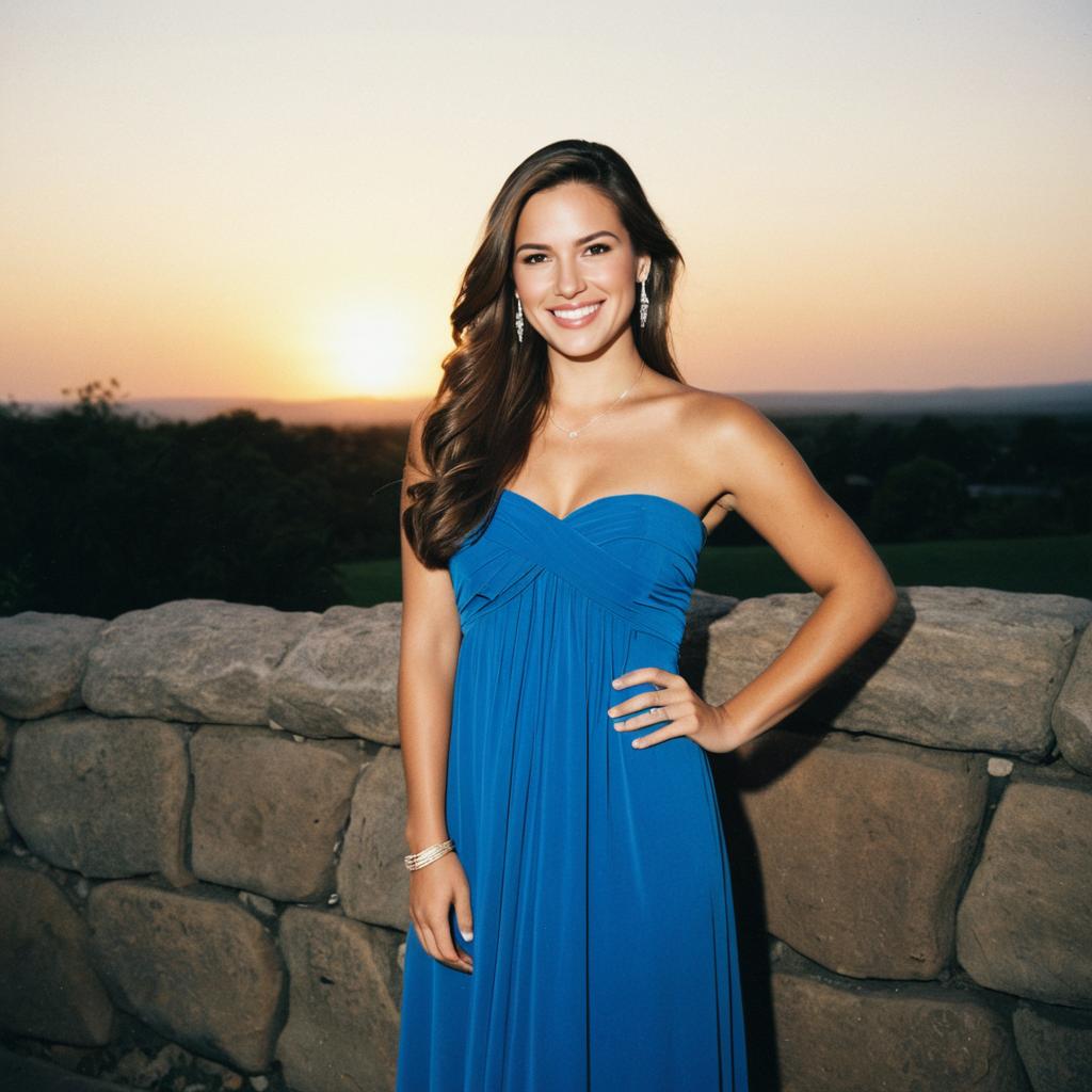 Sunset Joy: Young Woman in Blue Dress