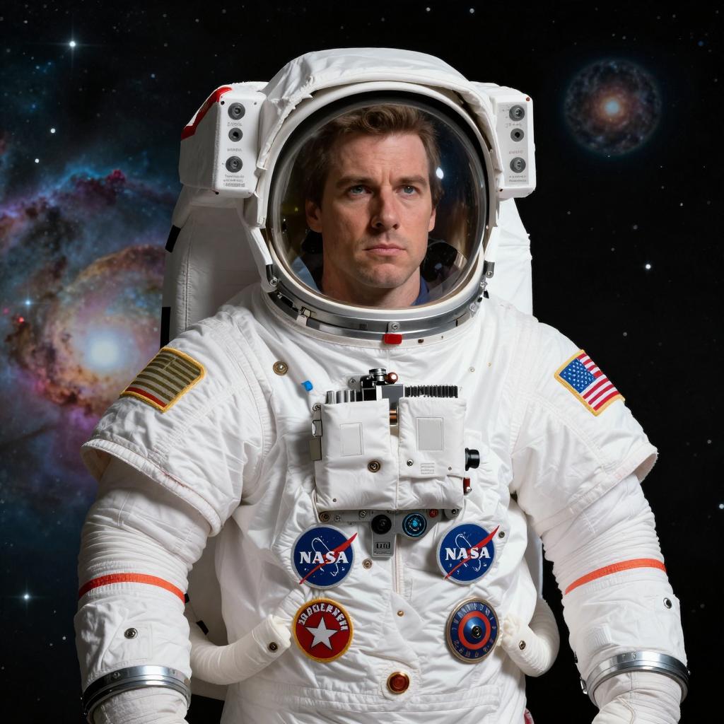 Nasa astronauts, realistic CGI, female astronaut, standing in spaceship, white spacesuit, NASA patches, American flag on left shoulder, serious expression, dark brown hair in bun, realistic ures, metallic spaceship interior, bright lighting, detailed suit features, front-facing, slightly blurred background, high-quality digital rendering, photorealistic style, centered subject, no additional objects in frame