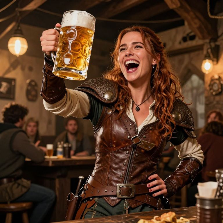 Happy Female Adventurer in Tavern