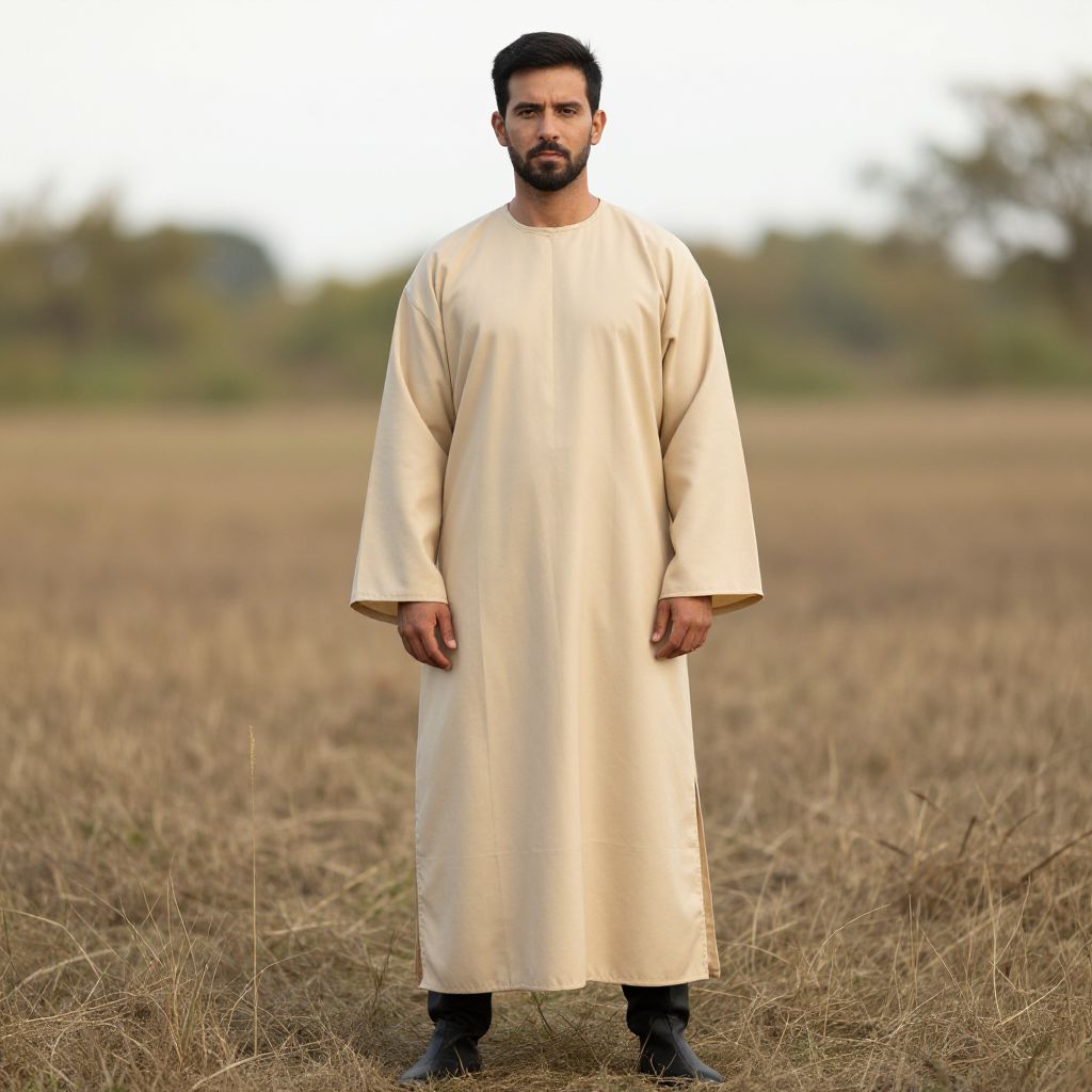 Style Cloth Costume, man in a beige robe standing in a field
